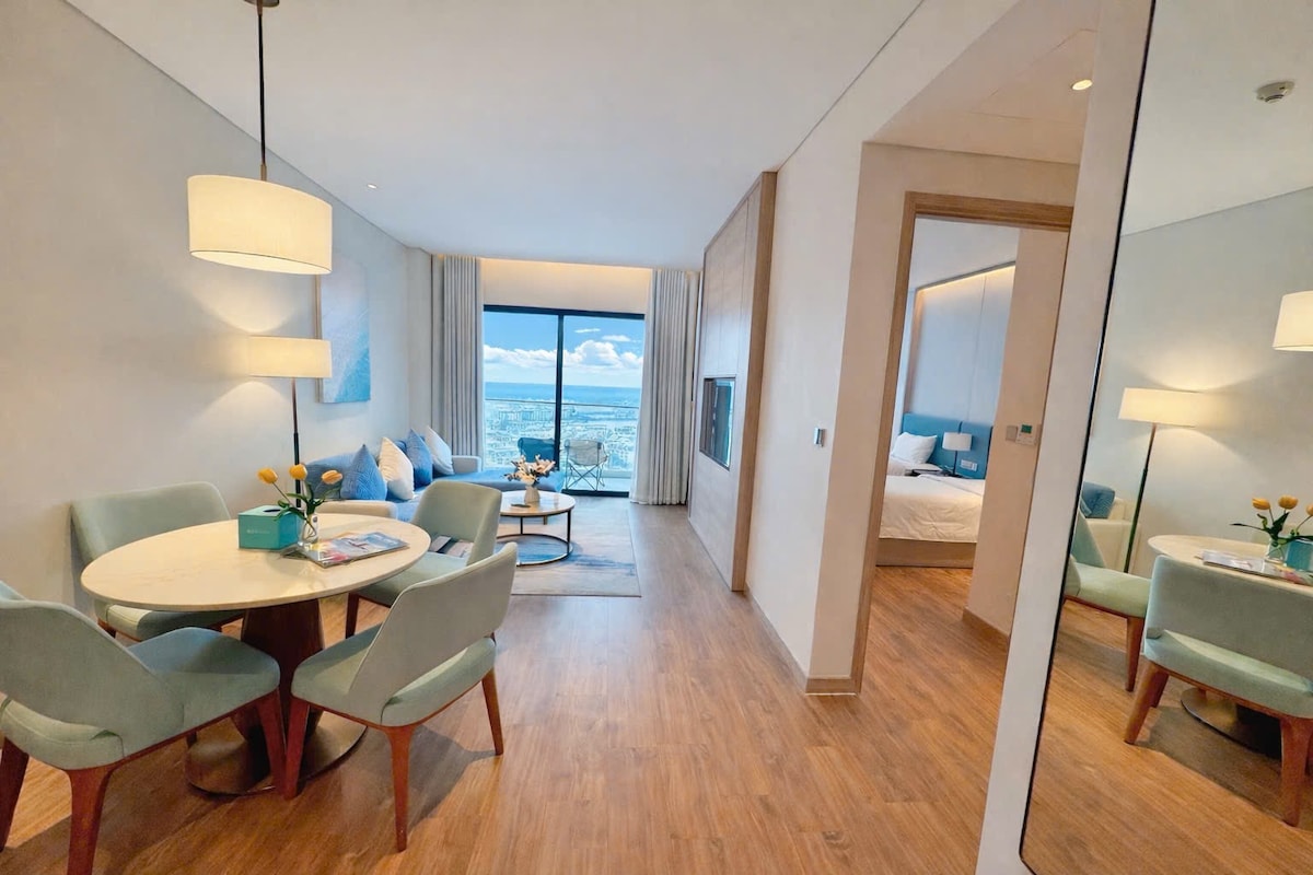 Disfruta de unas vacaciones refinadas en MSR – Marina Suite Residence, un apartamento de 93 m² en el piso 24 de Citadines 5★ con balcón con vistas a la bahía de Ha Long y una playa privada enfrente. Los muebles de alta gama, las mantas suaves y una cocina privada aportan una rara sensación de tranquilidad. Los huéspedes pueden disfrutar de dos piscinas de estilo resort y un gimnasio de 5★ a la tarifa preferencial del anfitrión. Incluso a mí, el anfitrión, me cuesta irme cada vez que regreso.