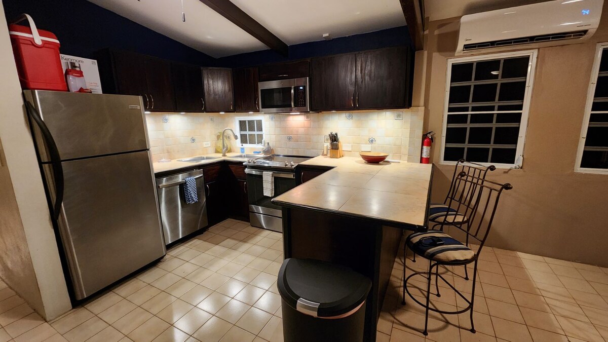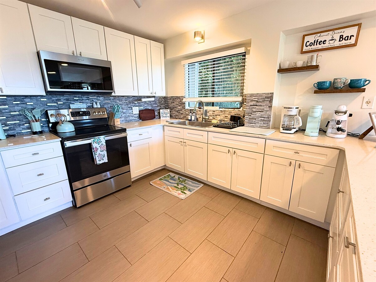 Bienvenido a tu refugio en la isla en Palm Gardens, ¡posiblemente el condominio más elegante del complejo! Este condominio de 2 dormitorios y 2 baños totalmente renovado combina el diseño contemporáneo con la comodidad caribeña. Entra para descubrir pisos de porcelana, encimeras de mármol y una paleta de colores brillante inspirada en la playa de arenas suaves y blancos crujientes. La sala de estar de concepto abierto fluye hacia una cocina reluciente con gabinetes blancos y acabados de primera calidad, mientras que los elegantes muebles de cuero y los sofisticados dormitorios crean