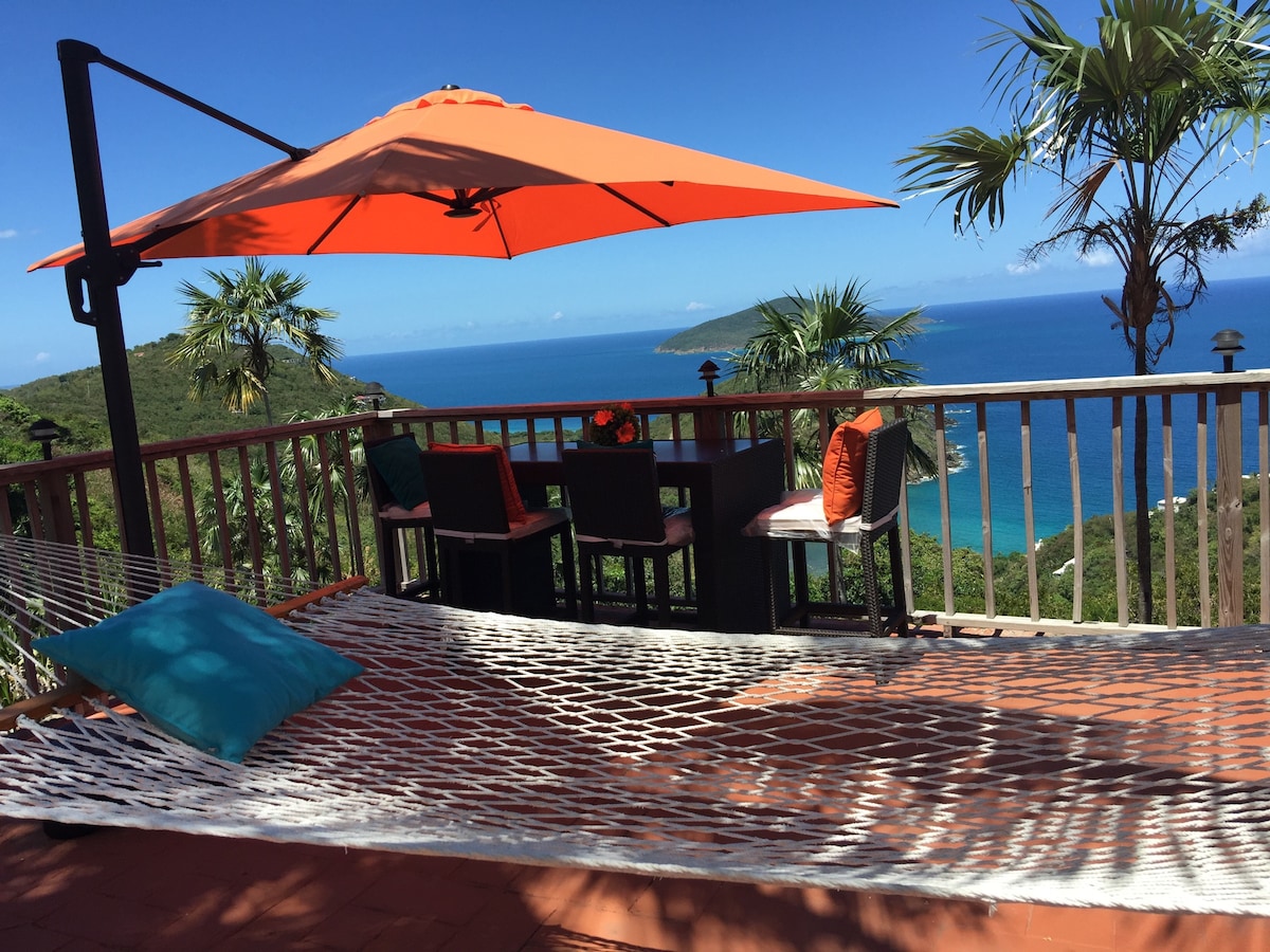 * NO CLEANING FEE* Breathtaking views of St. John & all the isles of the BVI. Sip coffee watching the sunrise over the island peaks along the Sir Francis Drake Channel while yachts anchor & dolphins play at Magens Bay. 1/ 1 apt on the Northside of St. Thomas. Includes AC, Starlink, generator, large patio, queen-sized bed, smart TV, fully-equipped kitchen, dishwasher, gas grill & more! Coffee, toiletries, beach chairs & coolers provided. The perfect place for your romantic island getaway!