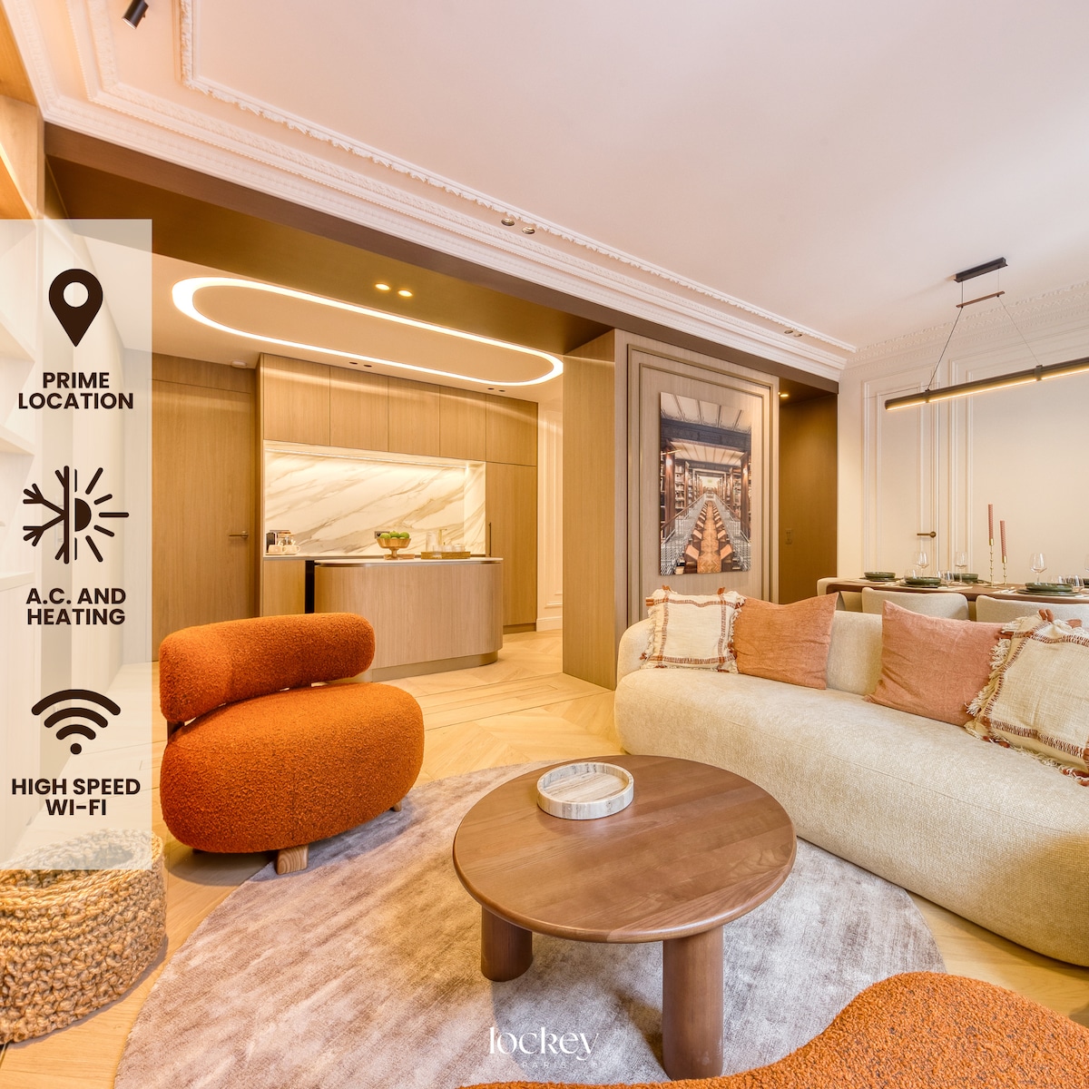 Apartamento con aire acondicionado de 60 m2 con una distribución de alta gama en pleno centro de París, en el barrio histórico de Montorgueil, famoso por sus tiendas de comestibles, pequeños bistrós y restaurantes. El apartamento está situado en el primer piso de un edificio en una calle muy tranquila. Fue renovado en 2023 por un famoso arquitecto y, por lo tanto, está muy bien organizado con equipamientos de muy alto nivel. Estará como en una suite de hotel con el encanto añadido de un verdadero alojamiento parisino.