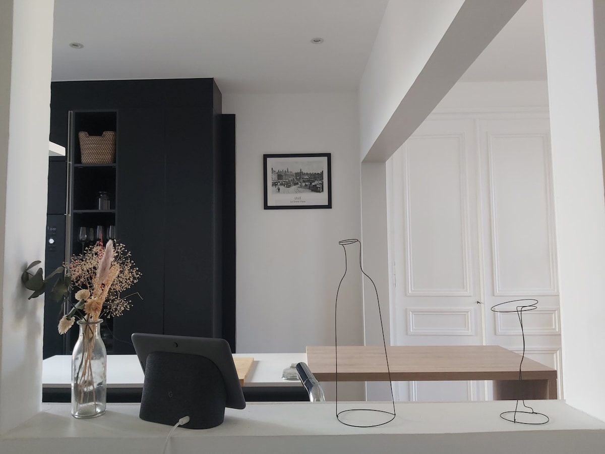 Magnífico apartamento reformado conservando los elementos distintivos del casco antiguo de Lille. Estupendo parqué de olmo. Cocina amplia y muy bien equipada. Zona de estar con sofá cama con cama de 140*192. Oficina con conexión a internet (wifi o ethernet) de alta velocidad. Habitación con cama de 140x200 y gran espacio de almacenamiento. Televisión en la habitación. Cuarto de baño con ducha, inodoro, lavabo y lavadora. El apartamento está en el corazón del casco antiguo de Lille y a 10 minutos a pie de la plaza principal.