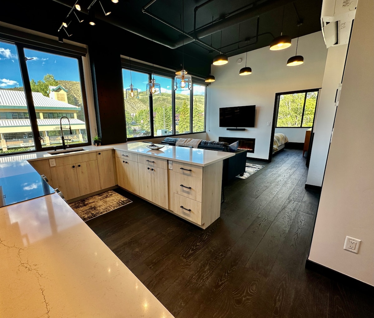 Modern Mountain Riverfront Condo, Walk to Lift