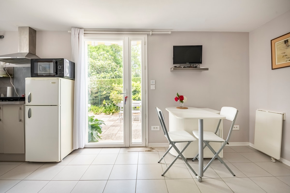 Elegante apartamento de un dormitorio en la planta baja que ofrece total independencia al pie de una encantadora y típica casa de Pilat, rodeada de tranquilos pinos. Alojamiento turístico de 3 estrellas. Perfecto para una pareja, con espacio para alojar a un niño en el salón. Las playas más hermosas de la zona, talasoterapia y golf a solo 2 km. Bicicletas gratuitas, alquiler opcional de bicicletas eléctricas en el lugar. Tiendas a 800 m, autobús Baïa a 50 m. Tu anfitrión puede recogerte si llegas en tren. ¡Relájate... y comparte el jardín con las ardillas!