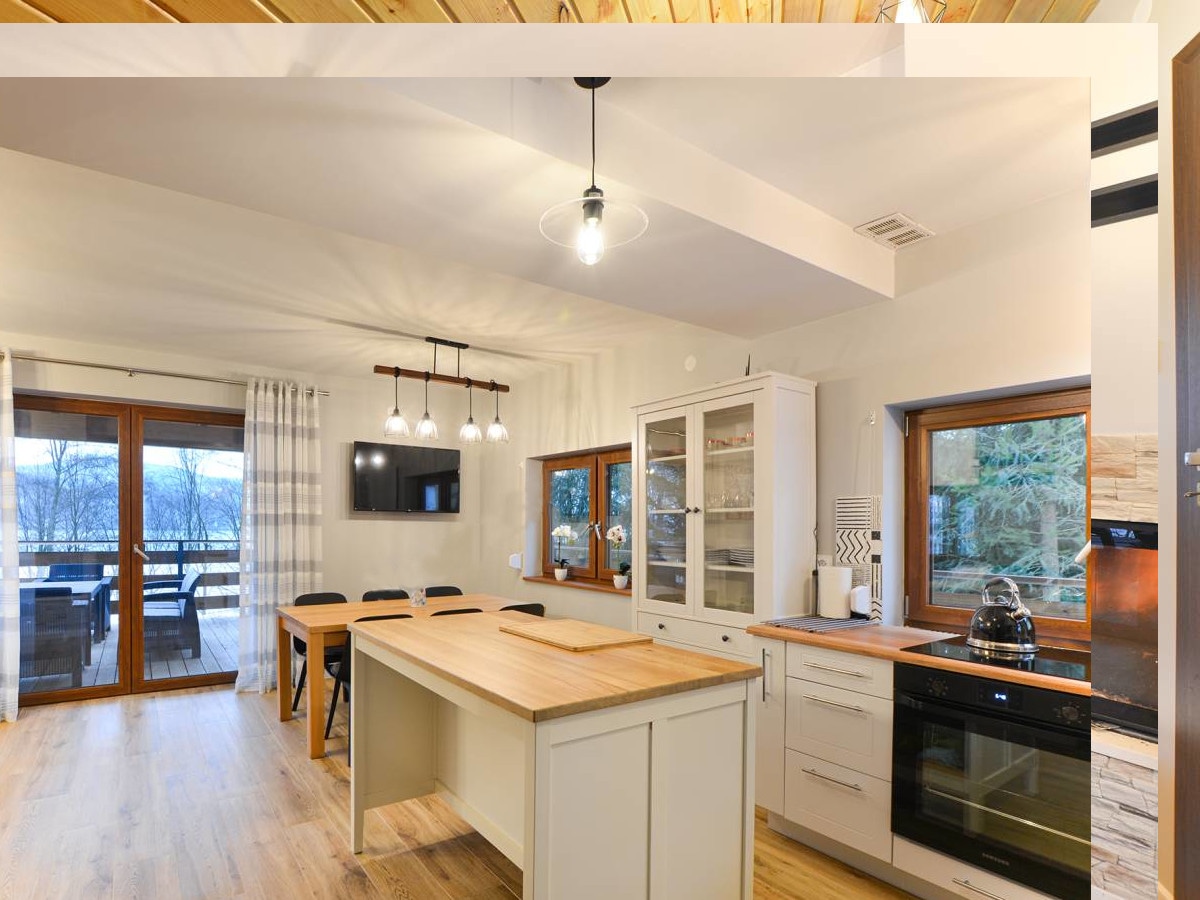 Apartamento Wood es un departamento donde la madera se encuentra con el olor al bosque. Por la mañana, siéntate en la terraza con vistas a las colinas de Bieszczady, relájate con el té junto al calor de la chimenea por la noche. El departamento está ubicado en el tranquilo pueblo de Strzebowisko, una base ideal para familias y para Cisna.
