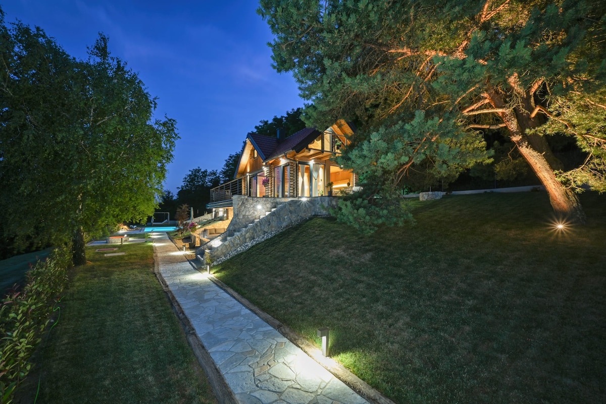 Casa de lujo de 5* recientemente renovada. Queríamos crear un lugar para que las personas puedan desconectarse del estrés cotidiano, respirar al máximo y sentir la alegría de la vida de nuevo en sus momentos más simples pero más importantes. Ubicado en las suaves laderas de Bilogora, rodeado de vegetación y tranquilidad. Piscina de agua salada y jacuzzi con vista. Relajación en una sauna finlandesa.
