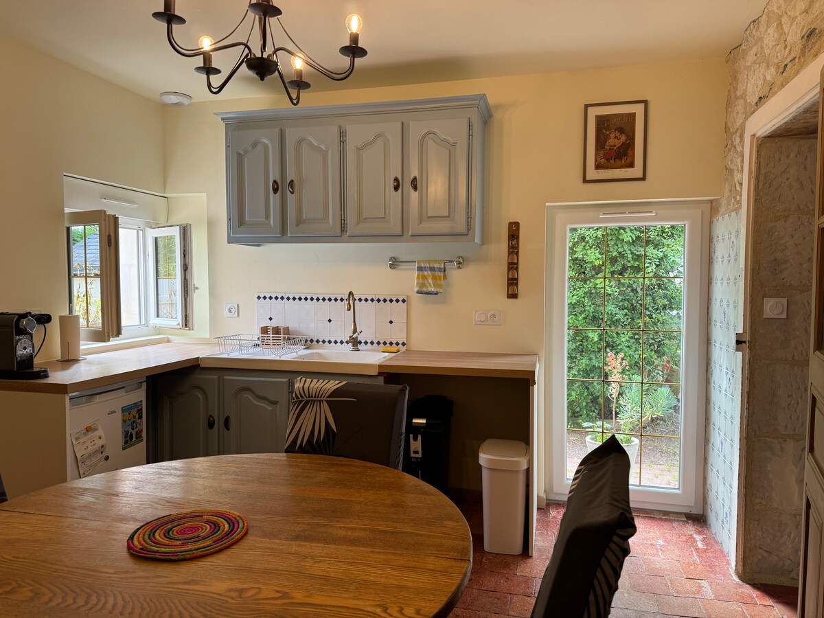Un coin de paradis dans le bourg. Une bâtisse ancienne, dans un petit village, labellisé de charme et de caractère. Un gîte entièrement rénové pour votre plaisir. Un grand jardin verdoyant et généreux où flâner, se reposer. La Loire et ses sentiers de découverte à deux pas. Une région riche de ses châteaux, vignobles, guinguettes. Venez sillonner les chemins à pied ou à vélos, faire du canoë, découvrir la gastronomie, les sites troglodytes, les musées ... Vous serez accueillis chaleureusement.
