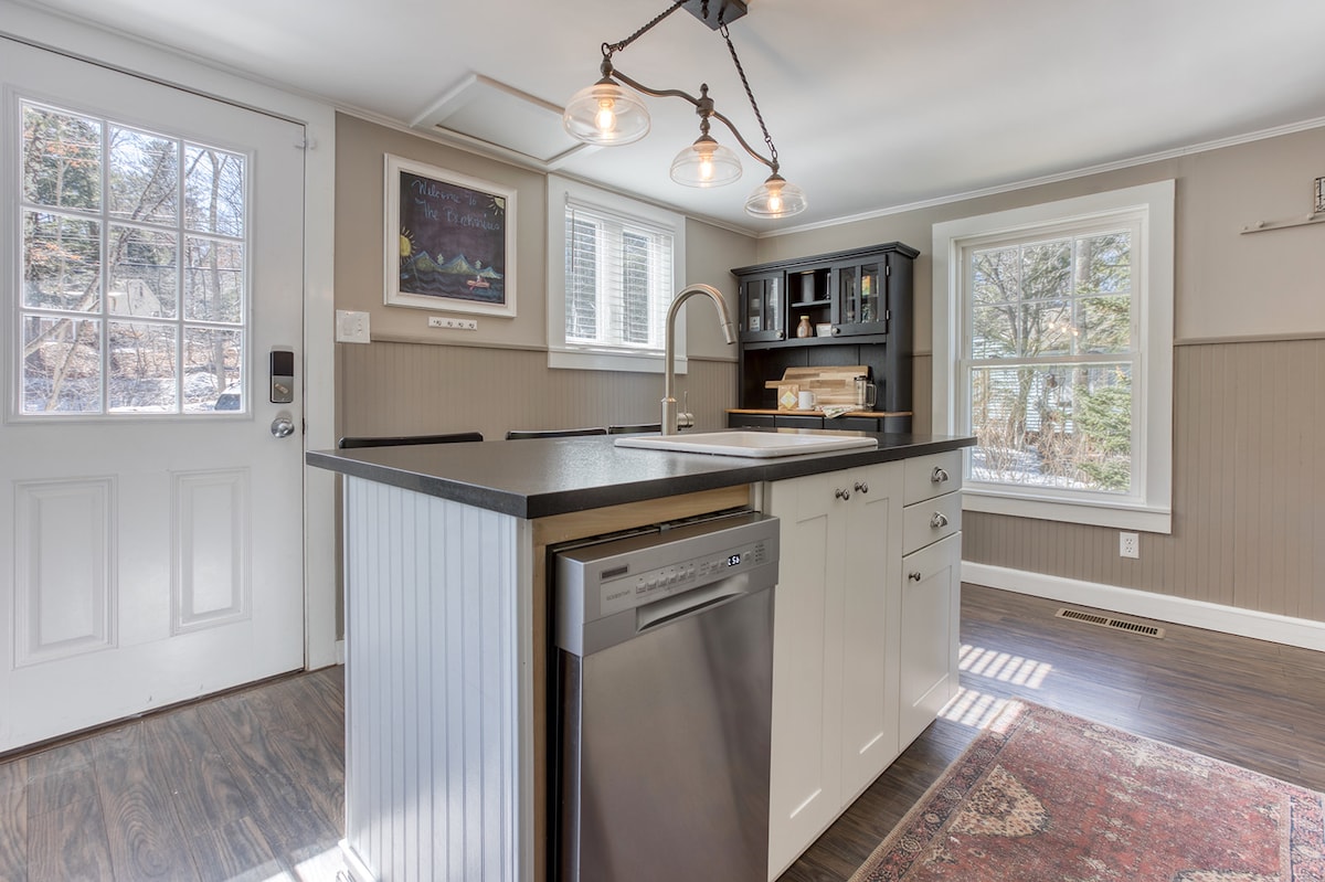 Esta casa frente al mar recientemente renovada está perfectamente situada cerca de muchas atracciones de Berkshire para una escapada ideal. Las vistas al lago son impresionantes durante todo el año. La chimenea en la orilla ofrece una opción única para reunirse al aire libre. Interior cálido y acogedor con tres niveles de vida para familias y amigos (hasta 8 personas). La zona ofrece senderismo para familias. Disfruta de la decoración caprichosa y los muebles de estilo de mediados de siglo. Cocina en la cocina bien equipada.