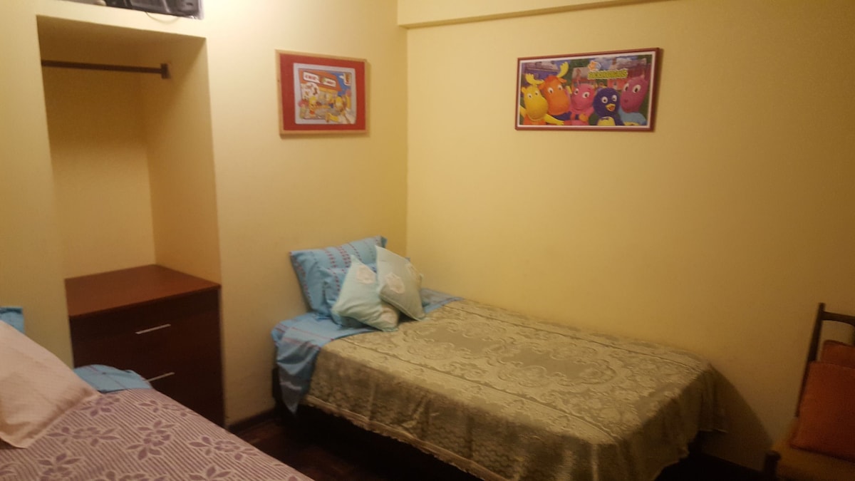 Relájate con tu familia, compañeros y/o amigos en este Alojamiento Privado donde la tranquilidad se respira, con un servicio de CALIDAD como te lo mereces. Cerca a farmacias, Tienda Mass, pollerias, restaurantes, mercados, Shalon, entre otros.