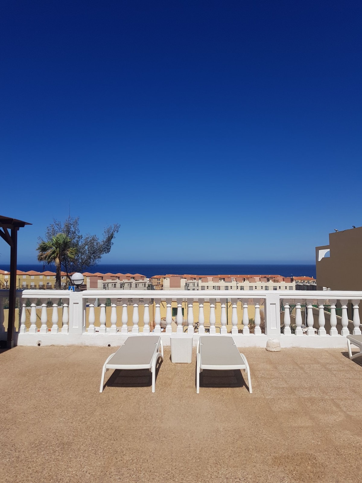 An oasis of tranquility right in the centre of Corralejo! This lovely and well decorated 2 bedroom apartment is ideally situated. From the spacious terrace you can enjoy the view of the massive pool, the lush garden and the sea! The apartment is situated 100 meters from the nearest beach. Right opposite the apartment you will find a tapas bar and restaurants. Just 50 metres around the block, there are shops, supermarkets and a private health clinic. No car required.