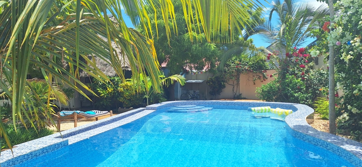 Enjoy your stay in this comfortable one-bedroom house with a private bathroom, fridge, and fan. You’ll also have access to your own private kitchen with a lovely outdoor dining area, perfect for relaxing meals surrounded by nature. The property features a large shared garden, ideal for reading, resting, or simply enjoying the peaceful atmosphere. Located just 1 minute from Nungwi Beach, in a quiet and safe area, yet close to local shops and restaurants. Free Wi-Fi included.