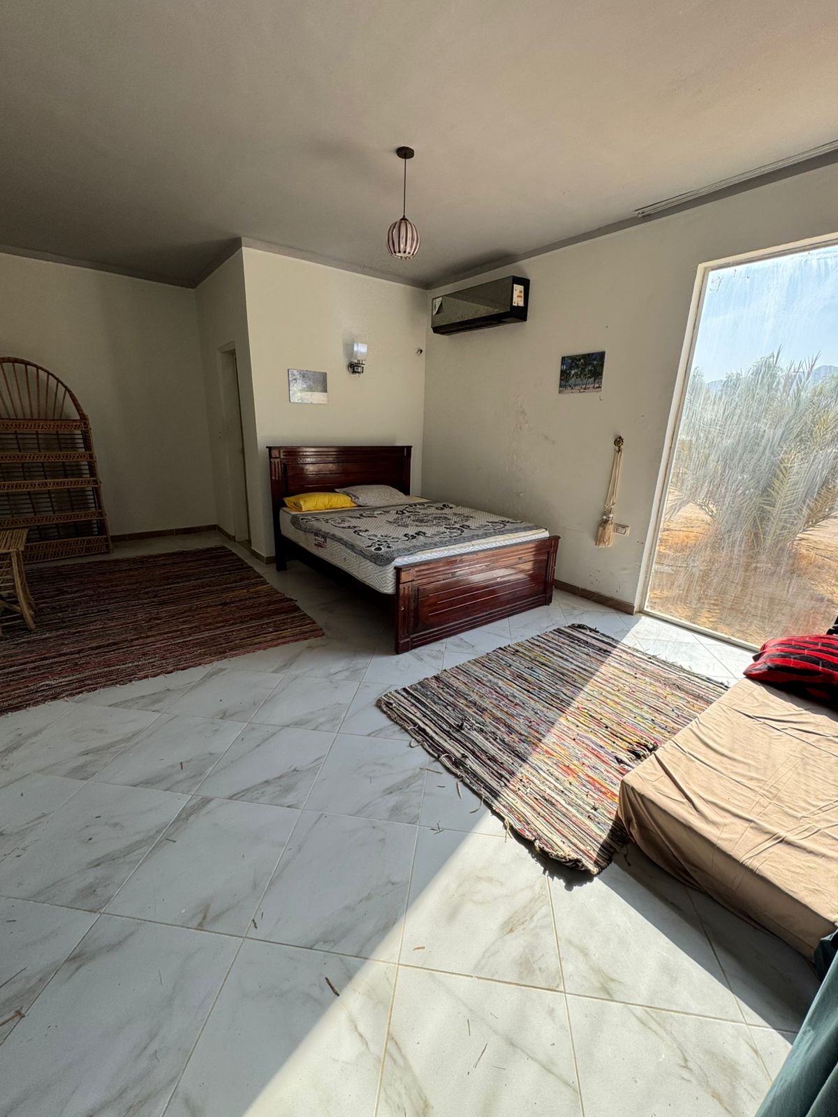Este único espacio independiente en medio del desierto del Sinaí se enfrenta al legendario y tentador Mar Rojo. Ya sea que elijas estar solo y dibujar las cortinas o dejar que la miríada de azules se derrame a través de las ventanas de cristal, el chalet Al Magarra tiene un ambiente único que no encontrarás en ningún otro lugar. Espacioso y cómodo, es el lugar más lujoso de la zona. El diseño sencillo y elegante lo inspira a relajarse y disfrutar de los poderes curativos de la naturaleza y la cálida hospitalidad que ofrece este lugar.