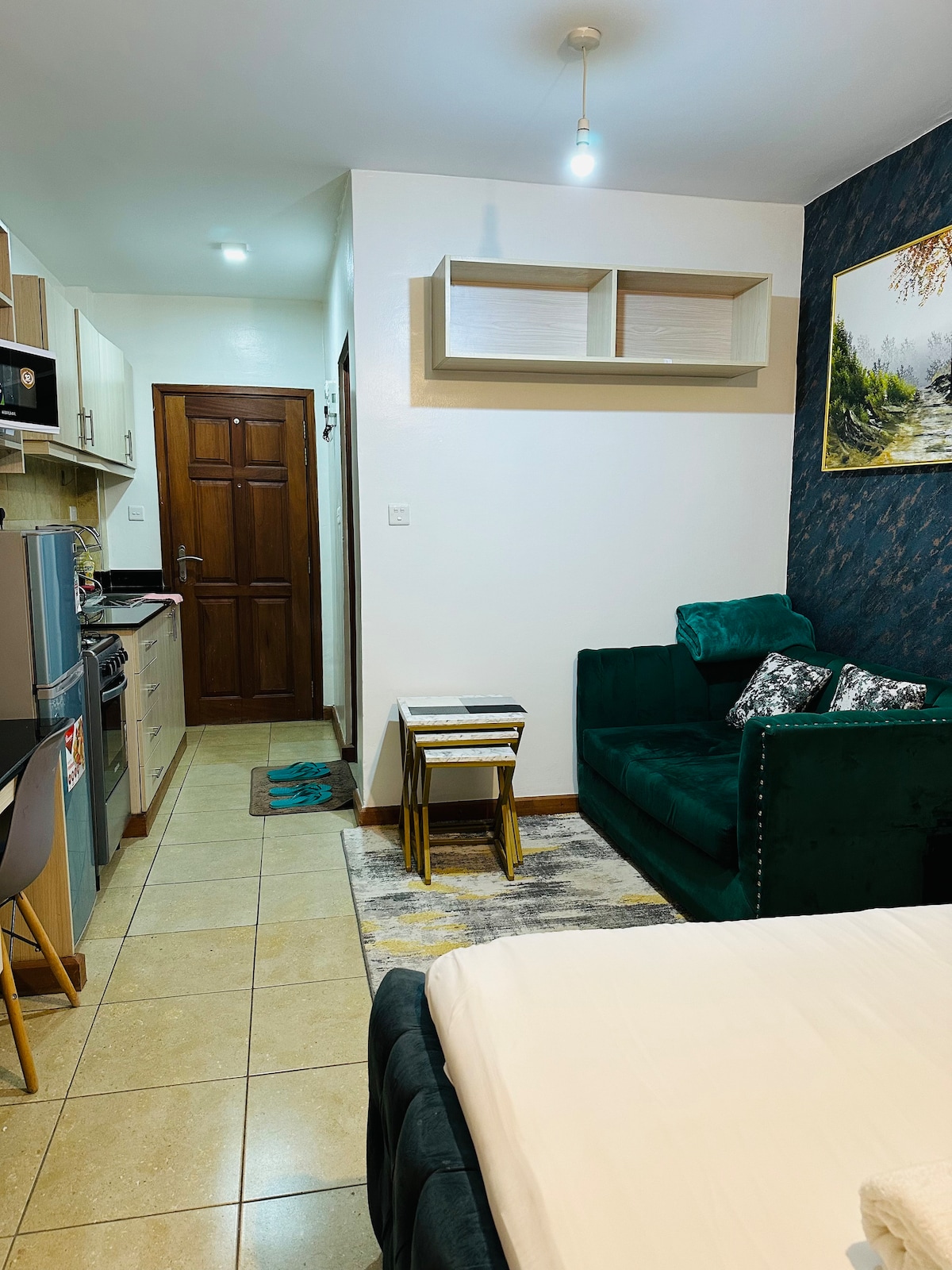 Modern Studio Apartment Near JKIA – 4th Floor with Great Views | Amana heights, Fedha Designed for comfort and short stays near the airport, the space includes: 🛏 Spacious 5x6 Bed – Soft, comfortable, and perfect for relaxing 📺 43-Inch Smart TV – Enjoy paid Netflix, Showmax & live football streaming apps 🍳 Kitchen with Fridge & Microwave 🚿 Hot Shower – Reliable hot water 📶 High-Speed WiFi – Perfect for business travelers & streaming. 🔐 24/7 Security & Free Basement Parking