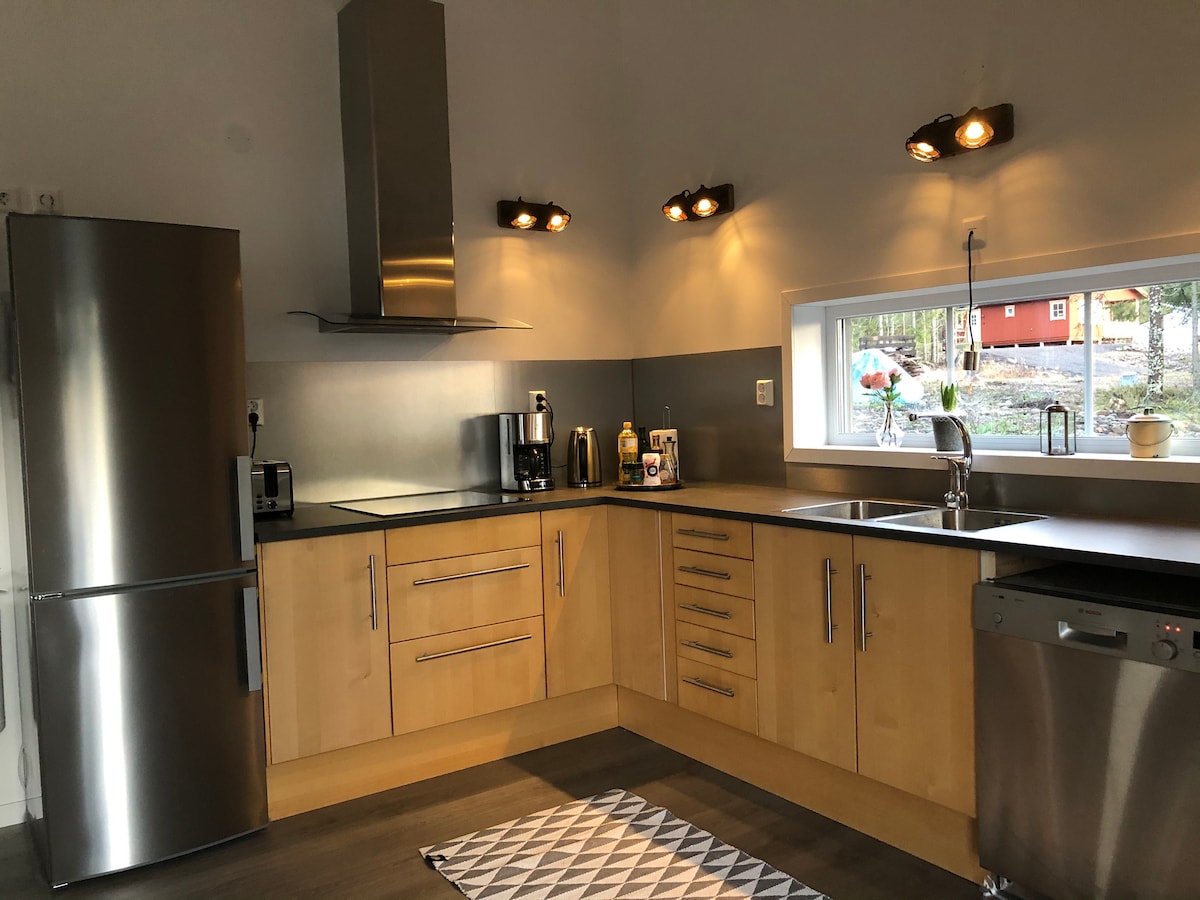 Welcome to this newly built house in beautiful Fällsvikshamn. The house was completed in the autumn of 2020, sea view and is close to the water. Fällsvikshamn is an older fishing village with old boathouses. You will live close to Rotsidan, bath from rocks or beach, hiking trails, excursion places, sea fishing and incredible natur. Underfloor heating in the hole house , and AC for sunny days. Wi-Fi, TV and normal housing standard. June-August only booking Sunday-Sunday.