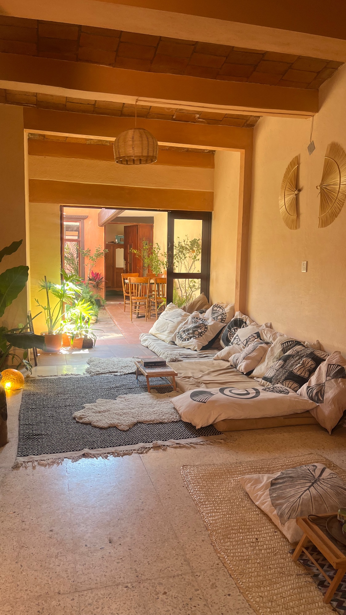 Nestled in the heart of Oaxaca, our 4-bed, 4.5-bath haven is a true embodiment of architectural brilliance, Curated by the owners of LA's iconic Guelaguetza. Each room narrates a story of elegance and comfort. Step onto the upstairs terrace for breathtaking views, or uncover the secret mezcal room curated with one-of a kind mezcales from the region. Immerse in a Oaxacan experience where modern luxury intertwines with rich cultural heritage. Welcome to your Oaxacan retreat!