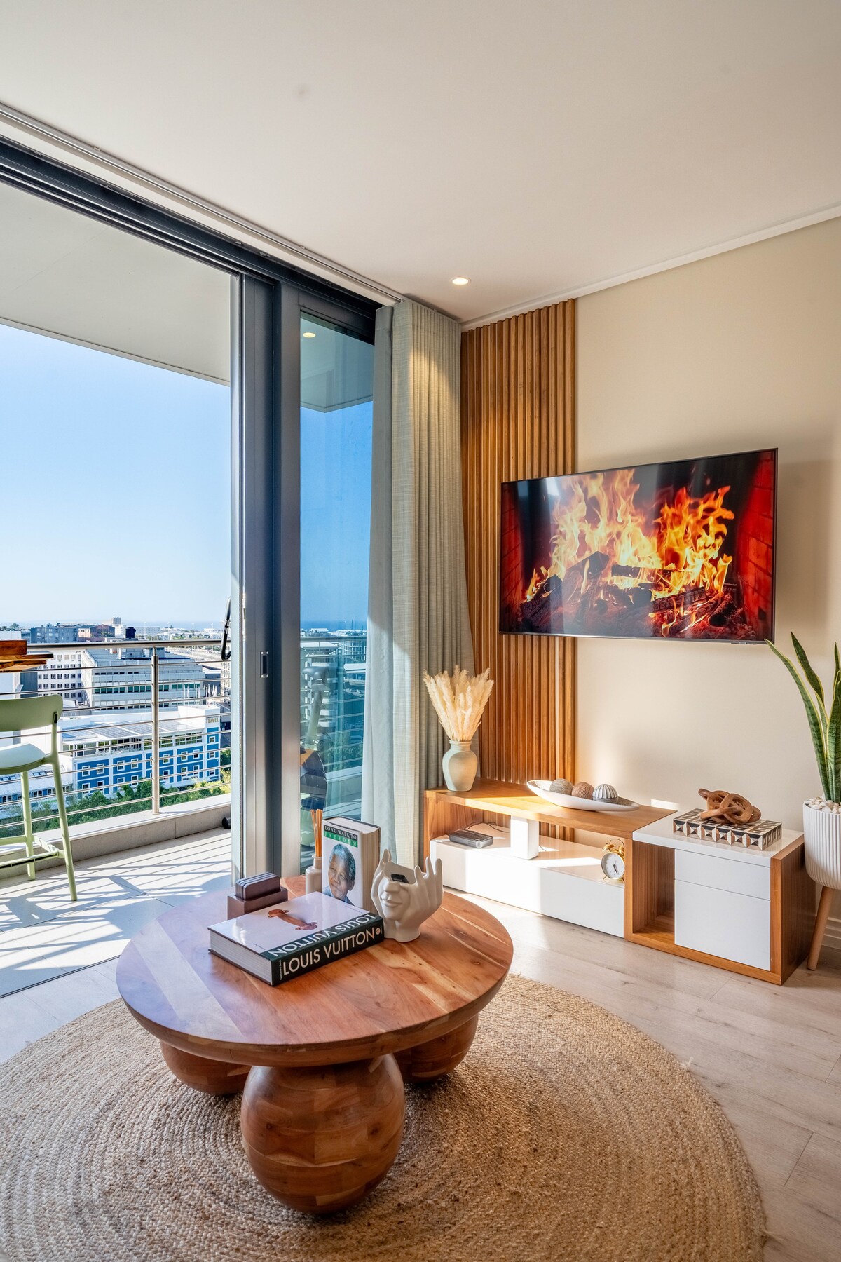 Welcome to your Cape Town escape—an elegant 2-bedroom apartment on the 7th floor with stunning views of Table Mountain, Lion’s Head, and Signal Hill. Warm beige tones, wooden floors, and refined décor create a calm, stylish retreat. The nearby Hartleyvale Stadium is within walking distance, ideal for sports enthusiasts. Enjoy sunrise coffee or evening wine on your private balcony—book your stay and experience Cape Town in style. ☀ Mountain views ☀ Gym ☀ Balcony ☀ Pool