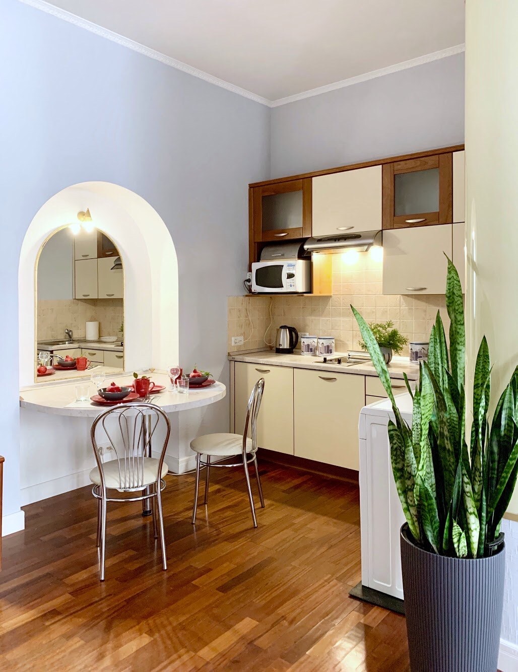 Acogedor apartamento en el centro de Kiev con un diseño atmosférico original. A 250 metros de la estación de metro Pecherska, a 20 minutos a pie de Khreshchatyk, patio tranquilo. El año de construcción de la casa es 1969. Cabina de ducha sin función de hidromasaje. La cocina tiene todo lo necesario para cocinar. Wi-Fi, TV, aire acondicionado, lavadora y secadora. Agua caliente siempre. Armario grande. Agradable ambiente acogedor del interior (pseudo vintage-hand made) con pinturas de autor. Limpieza perfecta.