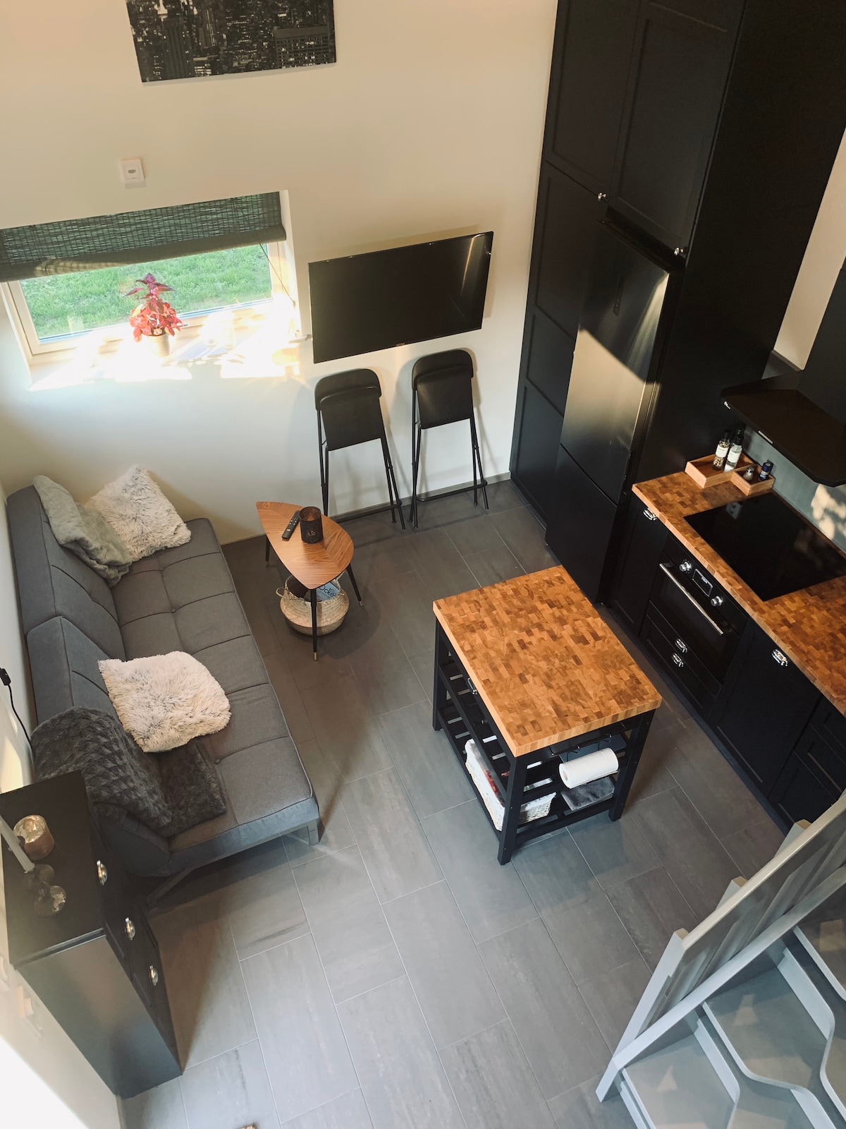 Bienvenido a esta acogedora casa flotante de 30 metros cuadrados con unas vistas impresionantes del lago Aspen, perfecta para los amantes de la naturaleza que buscan paz y relajación. La cabaña se encuentra justo al lado del agua y cuenta con una pequeña cocina, una sala de estar y un loft para dormir. El baño y el inodoro se encuentran a 30 metros de la cabaña en el sótano del edificio principal. Disfruta del café de la mañana junto al lago, date un chapuzón en el agua clara, ve a pescar o explora los hermosos alrededores.