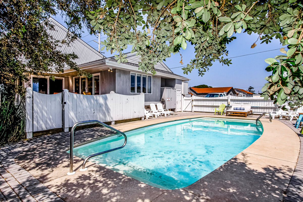 ¡Vistas al mar y piscina privada! Al aire libre: playa poco concurrida, una gran piscina, bar Tiki, jacuzzi, pozos de herradura, aro de baloncesto y columpios para la diversión familiar. Interior: una sala de juegos con mesa de hockey de aire, TV grande, equipo de música y un refrigerador de tamaño completo, bebidas perfectas en la piscina. Televisores en cada dormitorio y gran habitación y electrodomésticos dobles en la cocina. Conveniente cochera cubierta, área de almacenamiento para equipo de playa, ducha exterior privada, gran lavabo y área de mostrador cerca de la parrilla de gas (con gas). ¡LAS CAMAS ESTÁN HECHAS!
