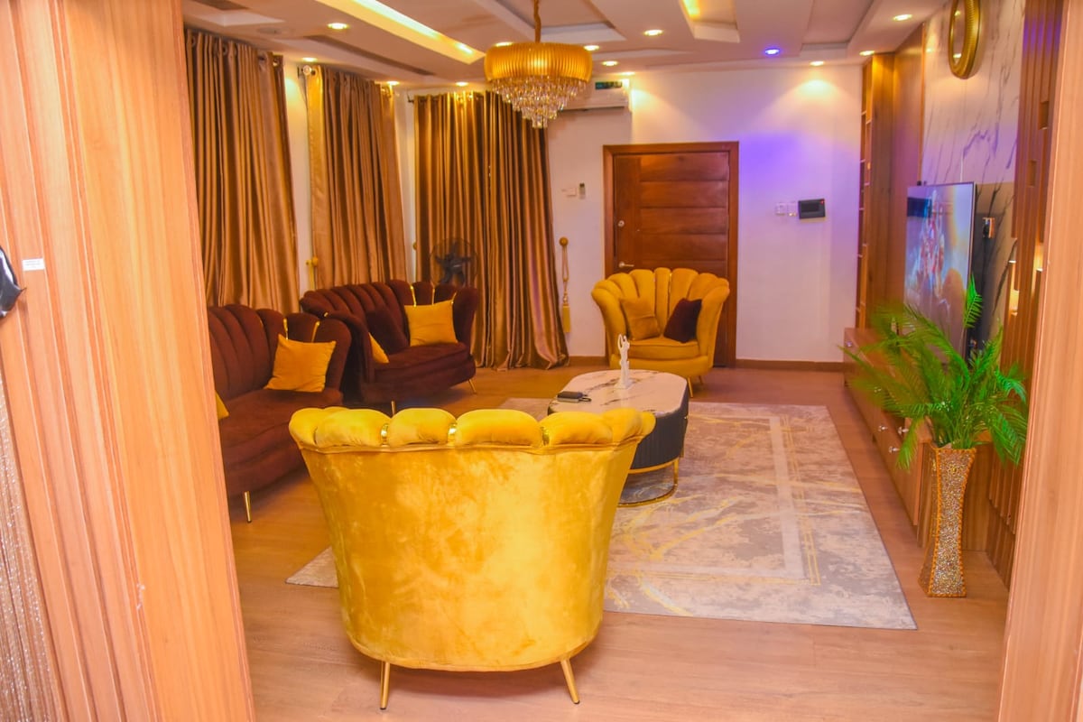 This beautiful apartment is located in a serene & secure environment & offers guests a home-away-from-home feeling.. Guests have access to fabulously-designed & decorated rooms/living room, a modern kitchen, Netflix/Prime streaming, unlimited internet, & 24/7 power supply (SEE HOUSE RULES ON ELECTRICITY ARRANGEMENT before booking). We deliver top-notch hospitality services to our guests, which makes us the perfect plug for your short & long term stays!