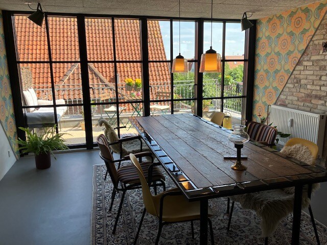In the heart of Odense you will find our 120 year old masonry villa. On the top floor there is an apartment with bedroom, living room, kitchen and bathroom with a big tub. The apartment has direct access to a 50 square meter rooftop terrace with a view of the beautiful Assistens cemetery and park. We are a family of 5 living in the ground floor. Our kids are 3, 6 and 10. There is access to our garden and trampoline, which you will share with us.