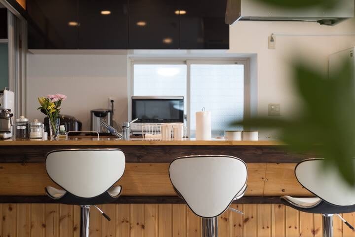 「casa m.k」 2023年Re Openします‼ (土曜日・日曜日・祝日のチェックインはご相談ください。) (以下は以前の説明文です) 2019年5月にリフォームしてオープン!システムキッチン・洗面台・お風呂・トイレ・エアコン・壁紙・家具・家電・照明が新しい2LDKです。 リビングには50inch,寝室には40inchの大型テレビがあります。 ビルの入り口には監視カメラ、玄関にはモニター付きインターフォン、ビル全体に火災報知システム、オール電化の上、冬は床暖房完備なので小さなお子様も安心です。free wi-fi。USBコンセント。2019年12月に給湯タンクから給湯ボイラーに交換工事をしました。お湯の心配はいりません。