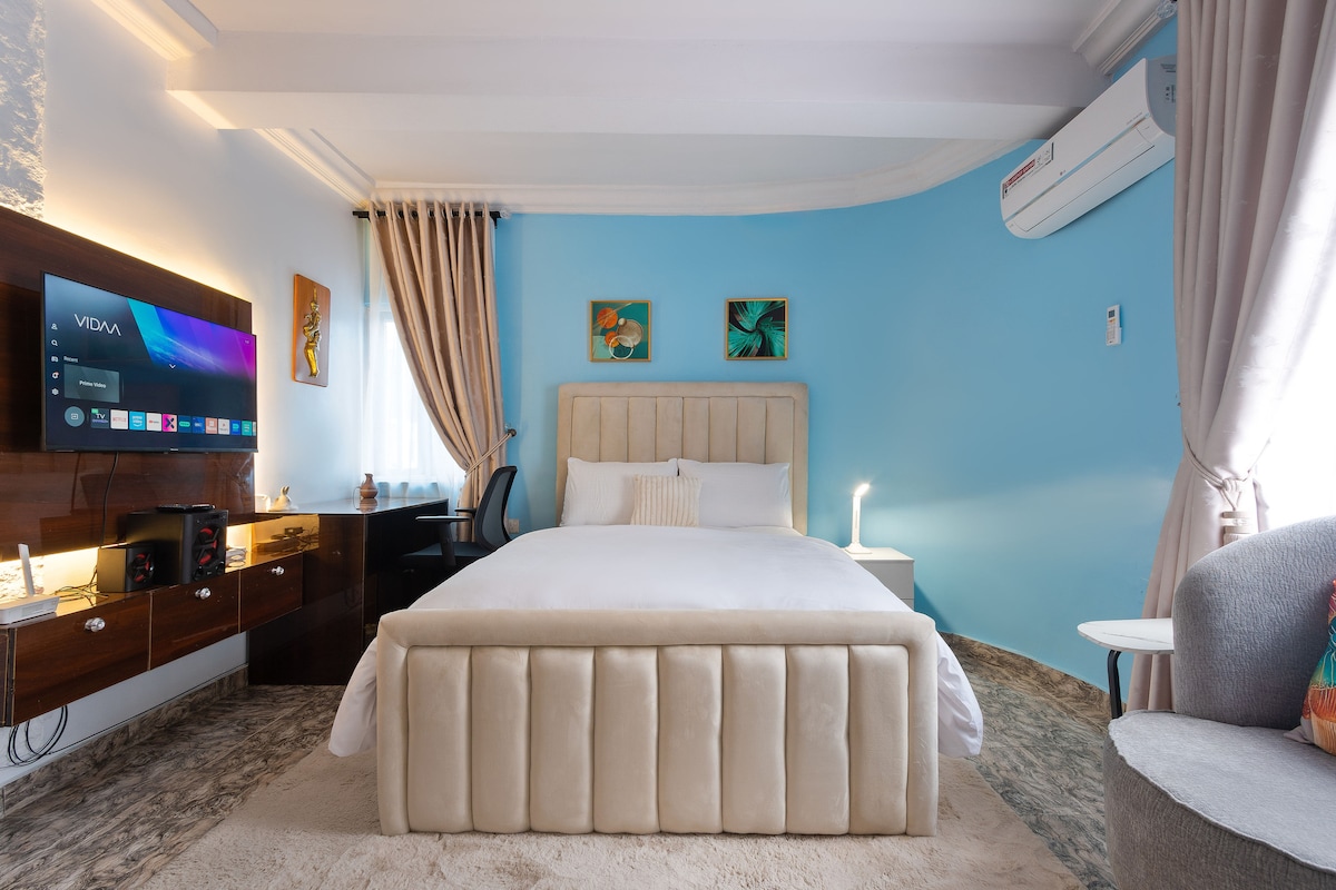 Penthouse romántico de 2 habitaciones en Lekki, con cine privado