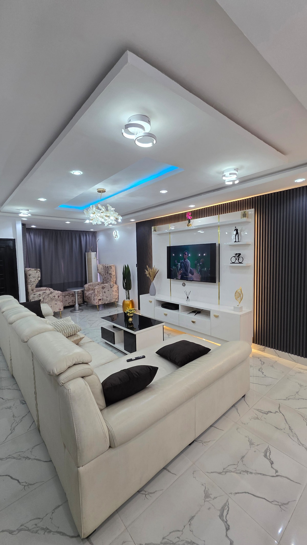 Disfruta del lujo y la comodidad de este impresionante dúplex de 4 dormitorios ubicado en el corazón de Lekki, un vecindario sereno, seguro y de fácil acceso a pocos segundos de la autopista Lekki-Epe. Diseñado para impresionar, este alojamiento es perfecto para vacaciones en grupo, viajeros de negocios, escapadas familiares o estadías largas. Cada detalle ha sido cuidadosamente seleccionado para ofrecerte una experiencia de vida de 5 estrellas en Lekki, Lagos. Este alojamiento te ofrece la mezcla perfecta de lujo, entretenimiento, privacidad y comodidad.