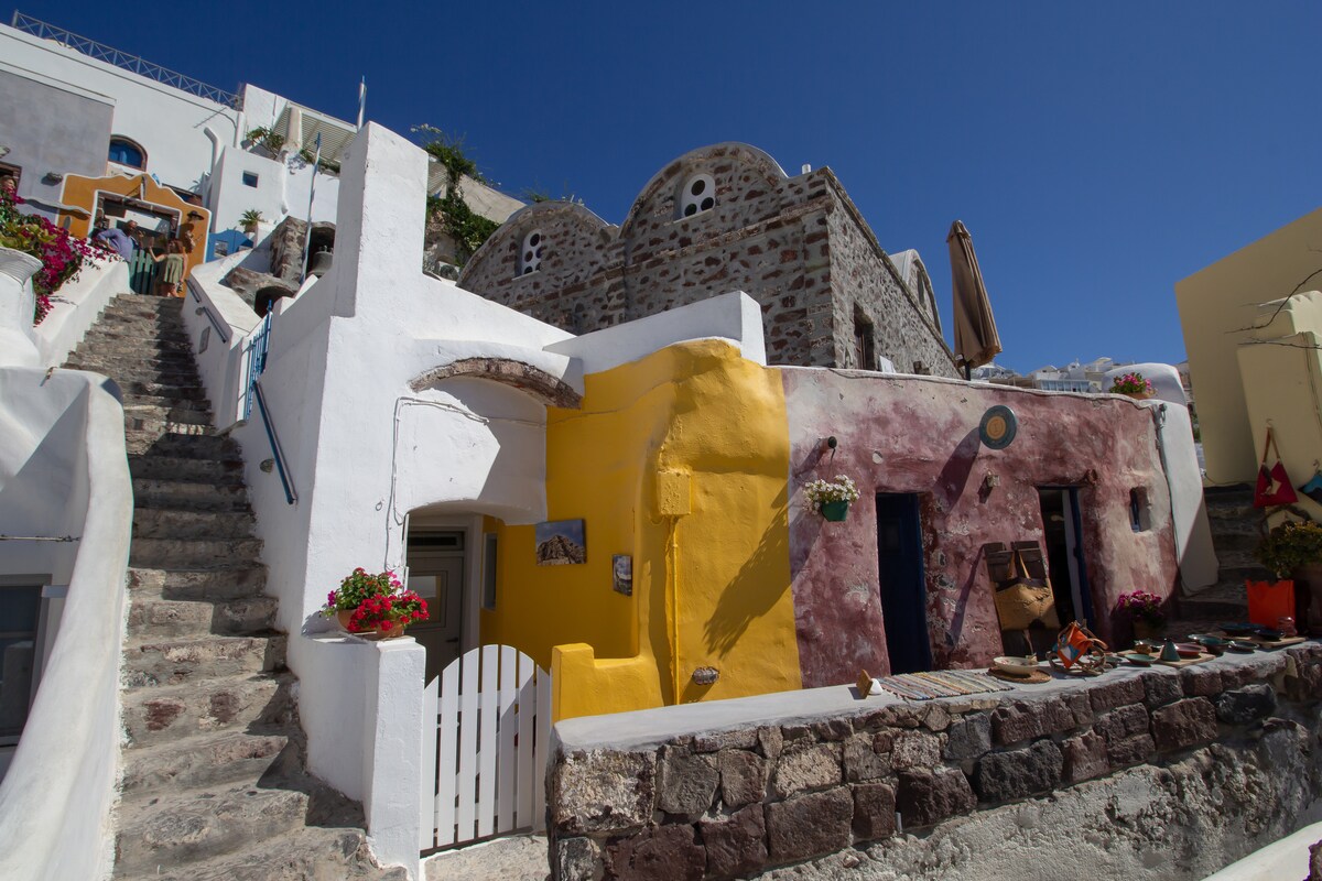 La "Casa encantadora" se encuentra en una ubicación premium, con un estilo decorativo único con elementos bohemios ligeros y arquitectura cicládica, ¡así como una bañera de hidromasaje privada al aire libre! A poca distancia, tienes acceso directo a la famosa vista de Caldera, la terminal de autobuses / taxis, supermercados, restaurantes y tiendas locales. Como extra de cortesía (de forma gratuita), los huéspedes pueden aprovechar las instalaciones de la piscina en el centro vacacional "OIA SUNSET VILLAS", ¡ubicado a solo 900 metros de distancia!