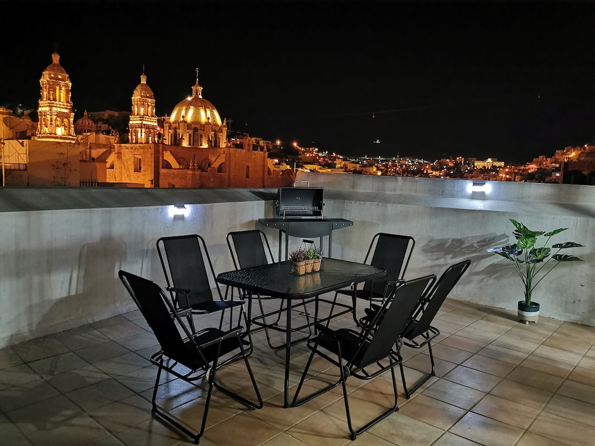 Disfruta de la belleza de la ciudad de Zacatecas, en nuestro alojamiento que tiene una inmejorable ubicación. A pocos pasos de Catedral, Plaza de Armas, Teatro Calderón y Avenida Hidalgo. Un alojamiento diseñado para su máxico confort con recamara con cama matrimonial, sala con sofa cama, baño completo, cocina y patio. Disfruta de los museos, restaurantes y bares ubicados alrededor. Tiendas de conveniencia y bancos a la vuelta de la esquina. Somos tus anfitriones de la ciudad de Zacatecas.