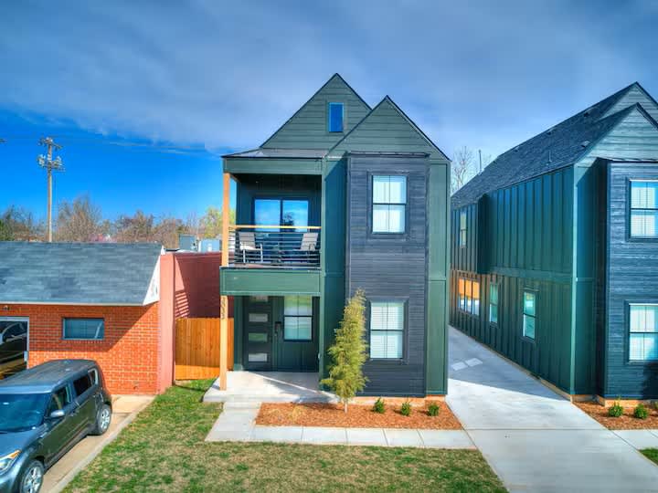 🎡 DOWNTOWN RIVERFRONT DISTRICT🎡 Wheeler District is OKC’s newest downtown community showcasing the original historic Santa Monica Pier Ferris Wheel as the gateway for its riverfront plaza. Unique homes built with appealing architectural designs, retail shophomes, fabulous eateries, and a national award winning brewery set this district apart. With the scenic view of its ferris wheel and the downtown skyline, this urban escape provides perfect relaxation amid your Oklahoma City stay!