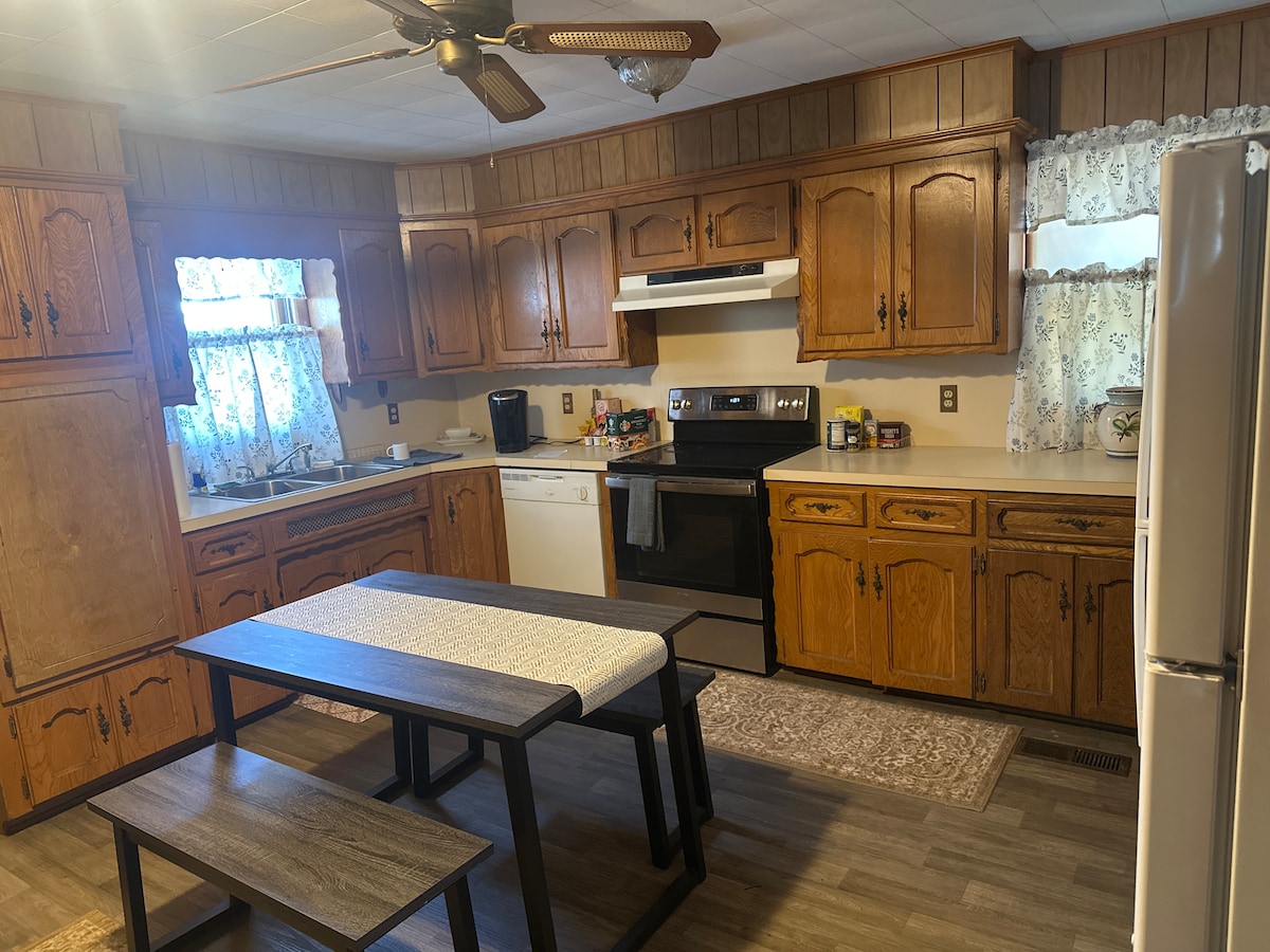 Moderno refugio de 2 dormitorios con cocina de diseño, fregadero de granja y hermosa decoración floral en todas partes. Disfruta de un televisor Roku grande con barra de sonido premium y subwoofer en la sala de estar, televisores Roku en los dormitorios, sofás reclinables eléctricos, wifi ultrarrápido y un interior completamente remodelado. Relájate con los relojes de alarma de ruido blanco, una lavandería completa y un acogedor comedor. El café Keurig, los juegos retro, la parrilla de pellets y los detalles cuidados hacen de este un alojamiento tranquilo y elegante para parejas o familias.