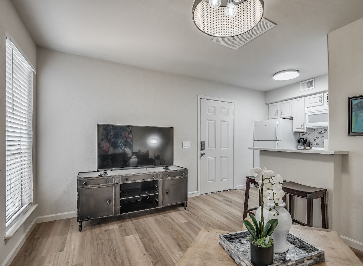 ¡Disfruta de una reserva de lujo en este apartamento tipo estudio céntrico y bellamente diseñado! Este apartamento recientemente remodelado tiene acabados de alta gama con gran calidad en mente. Todo, desde las luces superiores regulables hasta los acabados de mármol, se diseñó pensando en ti. A los huéspedes les encantará nuestra zona de patio al aire libre con asientos. También disfrutarán de nuestros infinitos servicios como wifi rápido, piscina, chimenea, patio, parrilla y mucho más. Estamos ubicados a pocos minutos del corazón del centro de Oklahoma City.