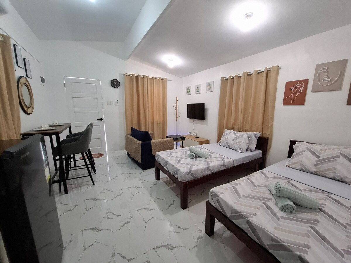 Bienvenido a tu relajante refugio en el corazón de Tambuli Seaside Resort, ¡el único centro vacacional residencial en Cebú con acceso directo a la playa! Este elegante estudio es perfecto para parejas, nómadas digitales o viajeros solitarios que buscan comodidad, conveniencia y encanto costero. Disfruta de una cama tamaño queen, cafetera, Netflix, WiFi de 300 Mbps, una cocina completa y un balcón tranquilo con vista al jardín. Ya sea que trabajes de forma remota o simplemente te relajes, este espacio acogedor tiene todo lo que necesitas.