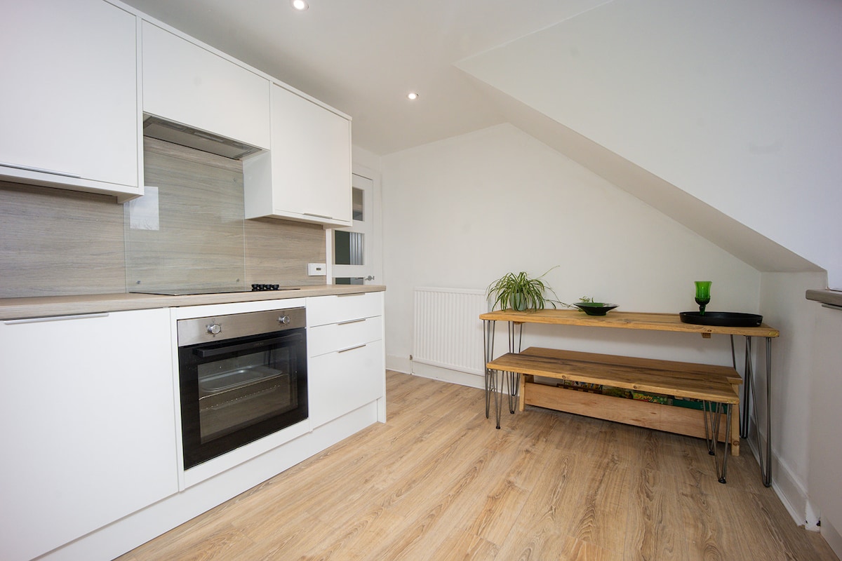 Disfrute de una estancia de lujo en este elegante apartamento en el centro de la ciudad. Este encantador espacio ha sido recientemente renovado y decorado con buen gusto. Cuenta con cornicing victoriano tradicional, techos altos y una gran escalera de arte deco en la entrada. Situado en el tercer piso (accesible solo por escaleras), este apartamento cuenta con fantásticas vistas panorámicas de la ciudad. Está a 3 minutos a pie de la estación de autobuses / trenes y hay muchas opciones de estacionamiento cerca.