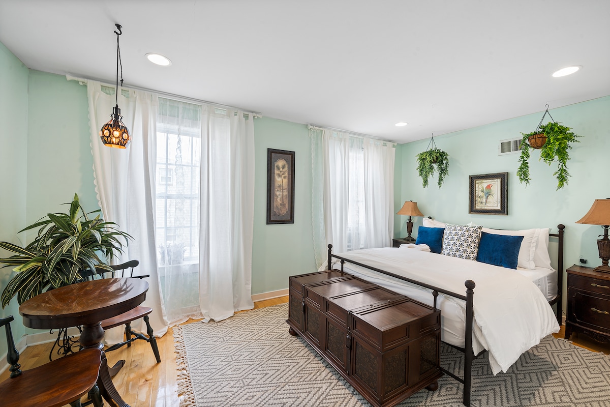 Bienvenido a nuestra suite moderna de un dormitorio recién renovada. Ubicada en el segundo piso en la histórica sección de la Ciudad Vieja de Filadelfia. A pocos minutos de la Campana de la Libertad, la Casa de Betsy Ross, Penn's Landing, Spruce Street Harbor y más. El barrio es conocido por sus boutiques de moda, excelentes restaurantes, galerías de arte y teatros, así como por su vibrante vida nocturna. Nuestro dormitorio cuenta con hermosas ventanas de arco palladiano que dan a la pintoresca 3rd Street.