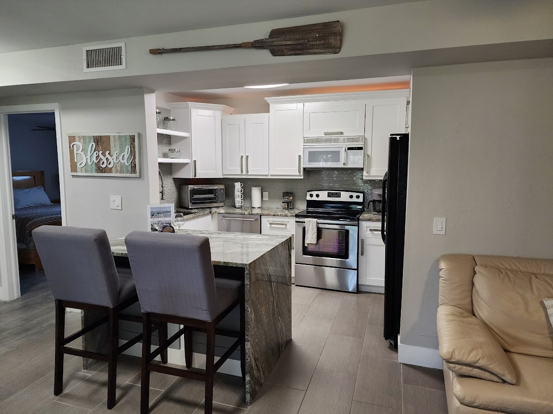 ¡Unidad 2024 bellamente remodelada! Ubicado a 1 manzana del muelle de Nápoles (que será reconstruido) y de la famosa 3rd Ave, con restaurantes y tiendas. Entrada privada a la unidad con estacionamiento designado. La piscina está fuera de tu puerta para facilitar el acceso. La unidad ofrece una suite principal con un colchón tamaño king y la habitación adicional tiene 2 camas individuales que se pueden convertir en una cama tamaño king. Solicítalo en el momento de la reserva. Hay una lavandería en las instalaciones. La cocina pequeña cuenta con placa de cocción, horno de microondas/convección y una pequeña nevera.