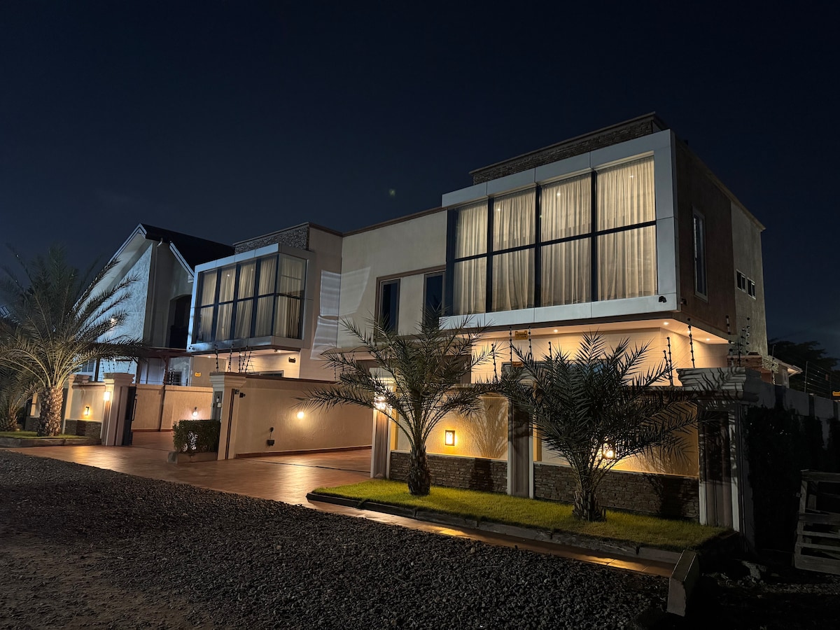 ☞ Piscina privada con tumbonas (extremo poco profundo de 1 metro, extremo profundo de 2 metros, piscina de 3 metros por 7 metros) 🏊 ☞ Wifi Starlink (más de 250 Mbps) 🌐 ☞ Energía eléctrica 24/7 (energía solar + generador de respaldo) ⚡ ✭ Cama tamaño king (180 x 200 cm) cómoda 🛏️ ✭ Servicios opcionales de chofer y chef 🚘👨🏾🍳 Limpieza ✭ diaria disponible 🧹 Alojamiento de ☞ 3850 pies cuadrados ☞ Televisores inteligentes + altavoces Bluetooth premium Samsung 11.1.4 con sonido envolvente 🎬 ☞ Estacionamiento (en el lugar, 4 autos) ☞ Lavadora + Secadora ☞ Cocina totalmente equipada y abastecida ☞ Aire acondicionado 》De 25 a 30 minutos del aeropuerto
