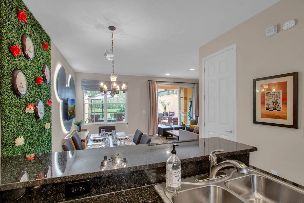 Crea recuerdos mágicos a solo 10 minutos del Animal Kingdom de Disney en esta casa adosada bellamente renovada de 2 dormitorios y 2,5 baños ubicada en un centro vacacional familiar de primera categoría, ¡sin tarifas del centro vacacional! Disfruta de la comodidad de tu hogar y de la diversión de un centro vacacional en un solo lugar: ✨ Cada habitación cuenta con baño privado ✨ Relájate en tu jacuzzi privado en un patio tranquilo Cocina ✨ completa, sala de estar acogedora y cómodo medio baño en la planta baja