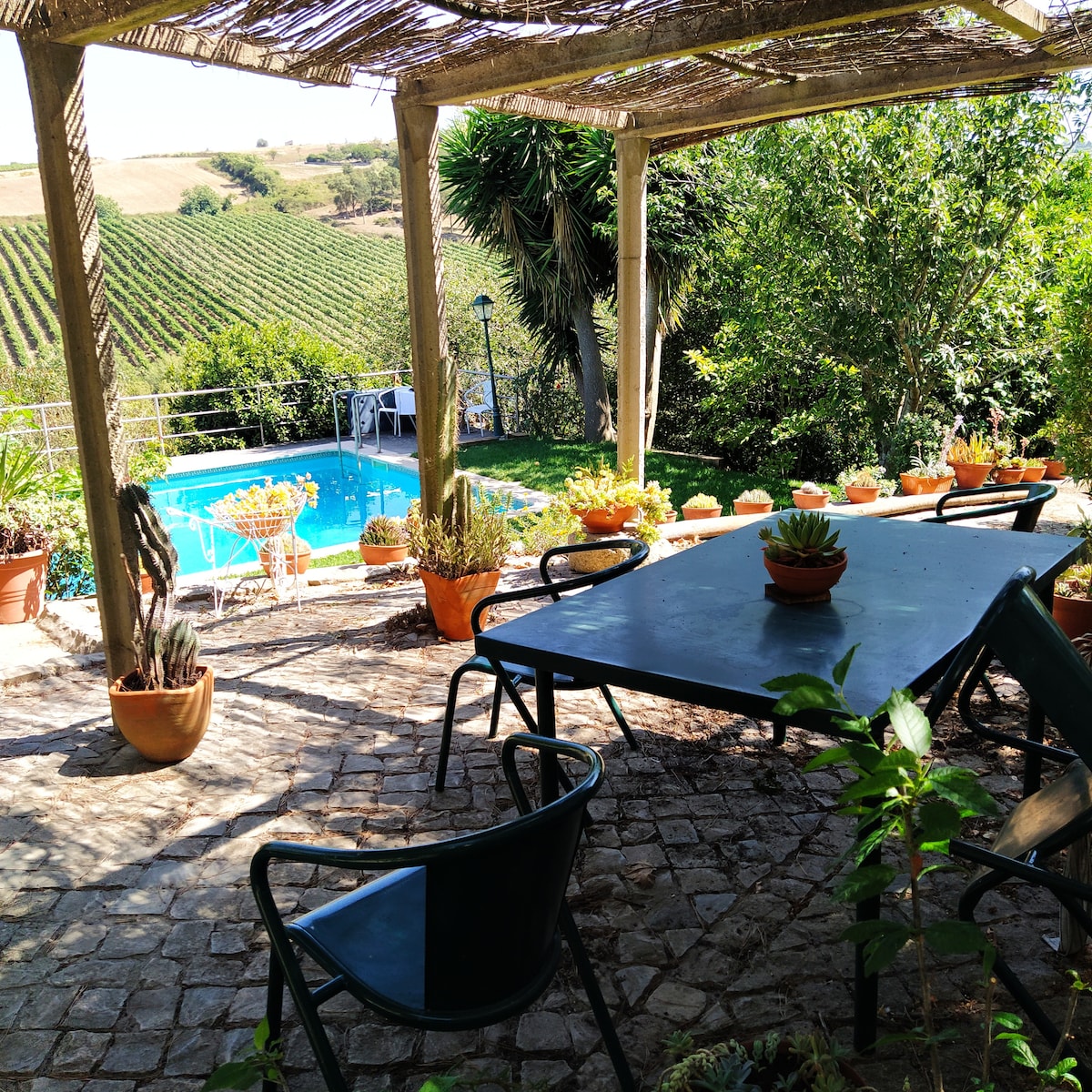Relax and recharge in a country house surrounded by a magnificent vineyard just 50 minutes from Lisbon. Spacious house, ideal for spending unique moments with family and friends. Just 15 minutes from Serra de Montejunto where you can enjoy countless walks, scenic walks and even visit the Fábrica do Gelo, unique in the country. 30km from the beaches of Oeste and 40km from the beautiful village of Óbidos.