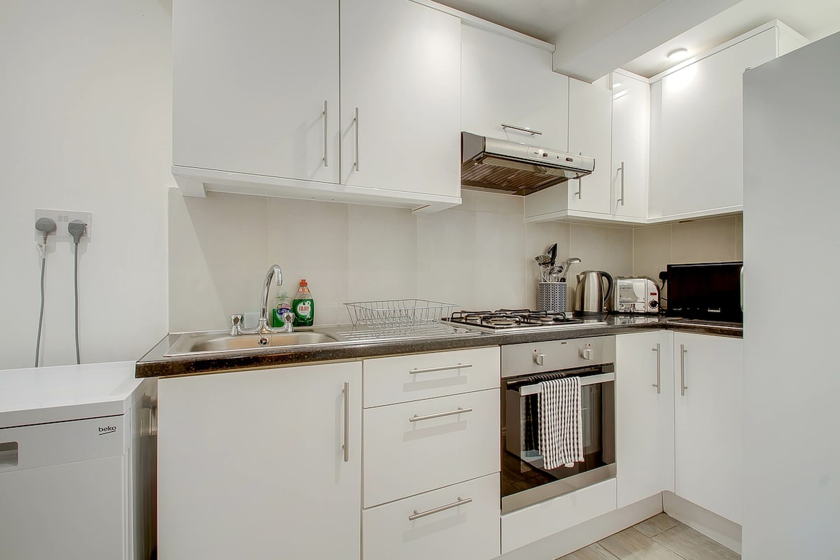 ¡Luminoso y soleado apartamento en Kensington con techos altos y a solo 4 minutos a pie de 2 estaciones de tren! Entra en este apartamento de 1 dormitorio en la planta baja, a solo 4 minutos a pie de la estación de West Kensington y la estación de Barons Court. Ideal para parejas, viajeros solitarios y una pequeña familia. ¡Esta propiedad también está a poca distancia de Kensington Olympia! 🚇 A pocos pasos de las conexiones de transporte: explora el centro de Londres, los parques y los restaurantes locales fácilmente. Una escapada acogedora para estancias llenas de diversión.