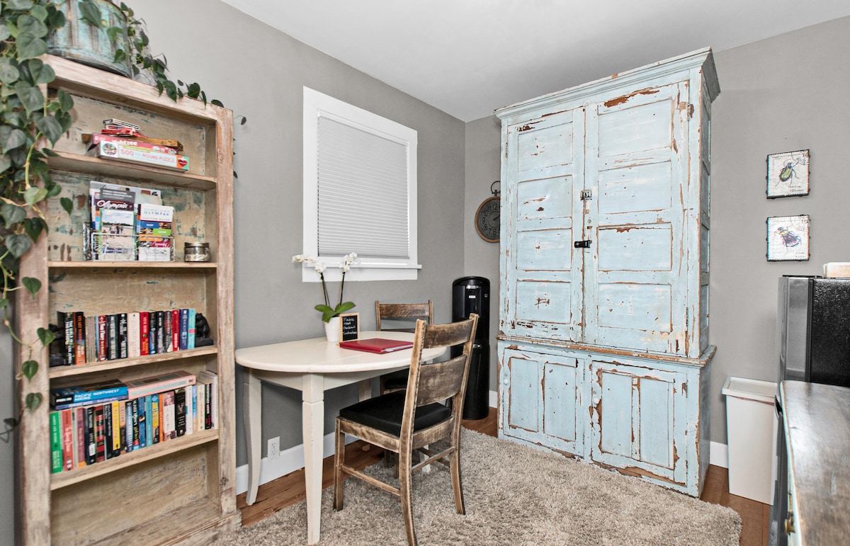Este estudio soleado, limpio y moderno en un vecindario histórico cuenta con todo lo que necesitas para una estancia agradable en Olympia. El espacioso estudio incluye baño completo, lavadora y secadora de tamaño completo, cocina completa y comedor separado. El estudio está en un cómodo autobús y a poca distancia del Edificio del Capitolio Estatal y del centro de Olympia. Estacionamiento gratuito en la calle. Vivimos arriba, encima del estudio, y escucharás signos de vida cuando estemos en casa.