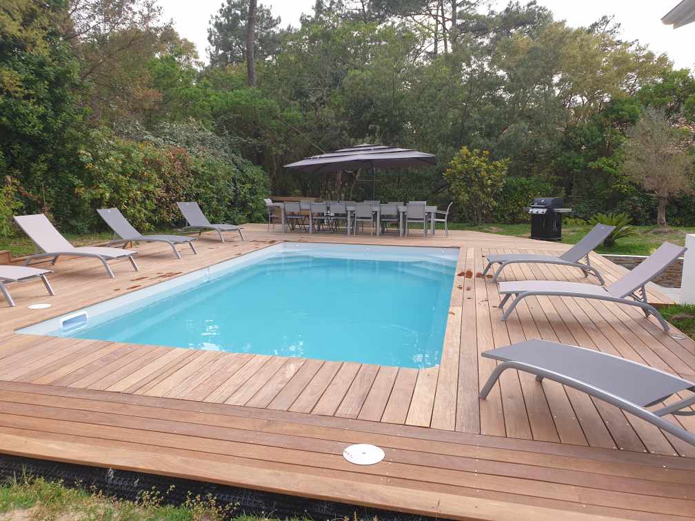 Ambiente de vacaciones para esta agradable casa de 230 m² y su parcela de 1100 m² con piscina climatizada. La casa está situada a menos de 400 metros del Océano Atlántico y sus grandes playas. En un entorno agradable y un barrio buscado, el lugar es ideal para disfrutar de un descanso fuera del tiempo y recargar energías al ritmo del océano. La casa tiene 2 alojamientos independientes y comunicados y puede alojar idealmente hasta 15 personas.