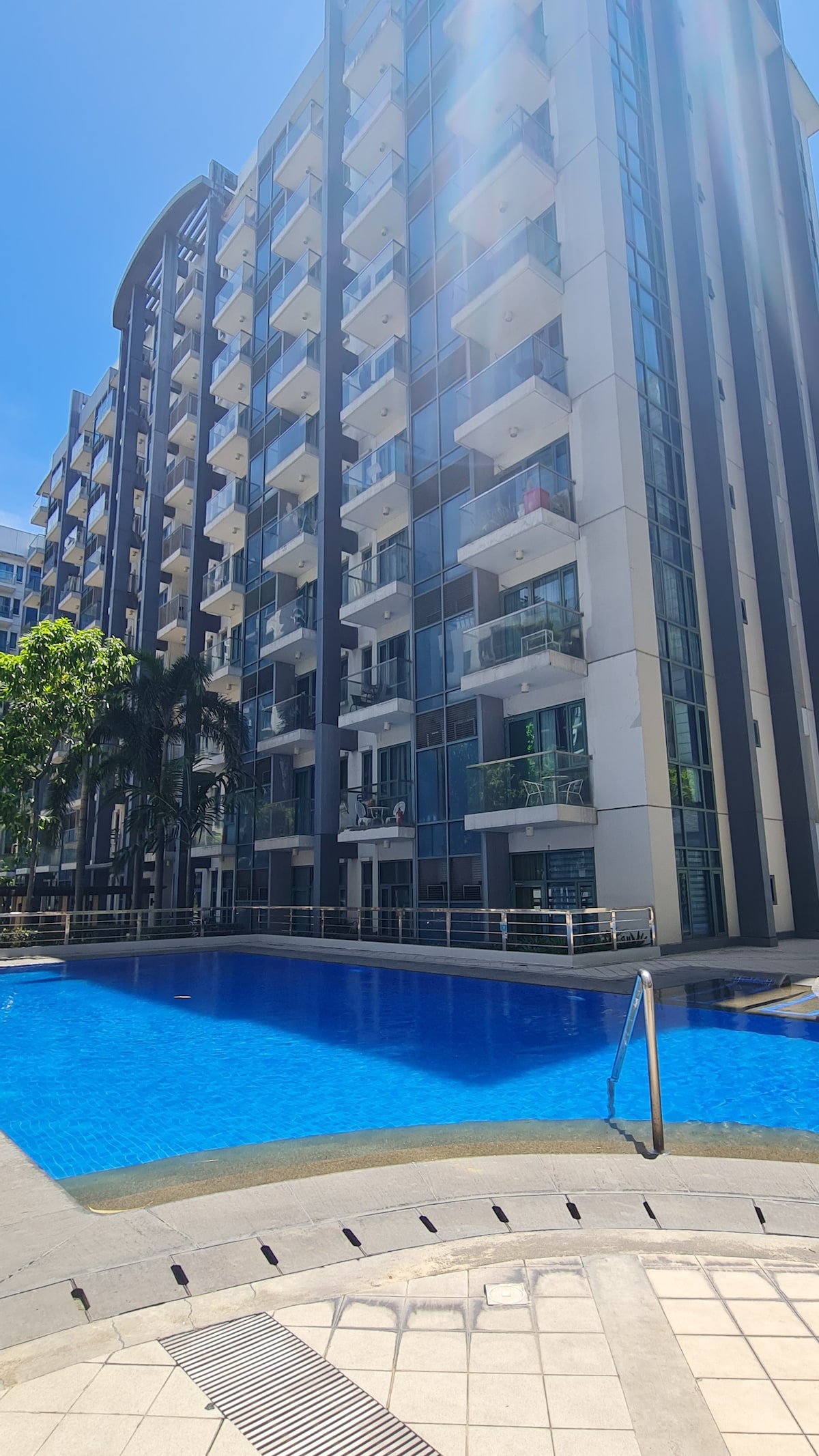 Two Palm Tree studio unit is simple but cozy condotel like room. It has everything you need from bedroom to kitchen to washers. Recommended for 4 people You can relax and enjoy the view from the balcony facing the pool and the main gate. Walking distance from Airport Terminal 3 via Runway Manila. 5 minutes walk to New World Resorts and other hotels, to restaurants, coffee shops, bubble tea shops, supermarkets, pharmacies and church.