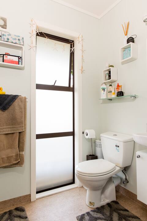 Relajate con la familia en este tranquilo alojamiento. Un clásico bach de Waiheke, enclavado entre árboles autóctonos y a poca distancia a pie de Palm Beach, perfecto para tu escapada a la isla. Con una ubicación céntrica, es un elegante bolthole que tiene todo lo que necesitas para descansar, relajarte y relajarte. Calefacción en invierno, aire acondicionado en verano, es un lugar dulce todo el año. Una amplia terraza abierta para sentarse y perderse en un libro o beber en una de las islas deliciosos vinos mientras se pone el sol. ¡Ven a visitarme pronto!