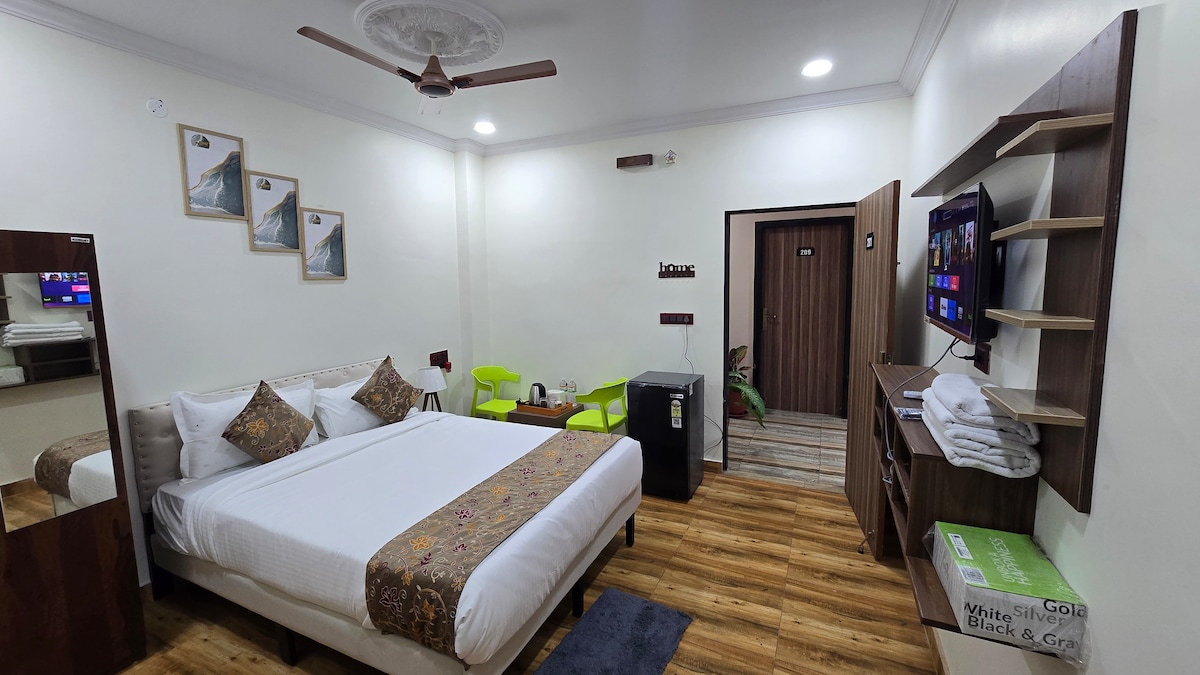 Esta elegante habitación cuenta con: - Lujosa cama tamaño king, perfecta para una noche de sueño reparador y rejuvenecimiento. - Diseño de tamaño generoso, que ofrece un amplio espacio para relajarse o concentrarse en el trabajo. - Baño impecablemente limpio, mantenido a estándares impecables para tu comodidad. - Desayuno saludable de cortesía todas las mañanas, preparado para energizar tu día.