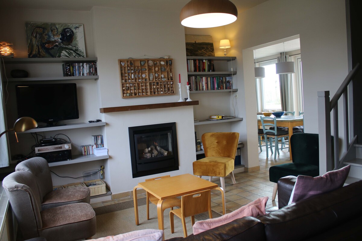 La casa de dunas tiene una ubicación única, en el borde de una antigua reserva de dunas, a 2 km del mar. El gran jardín orientado al sur está totalmente cerrado, ideal para niños. El callejón sin salida hace que haya un oasis de paz en nuestra cabaña de dunas. Alquilamos por fin de semana , entre semana, semana o más. El fin de semana siempre comienza el viernes por la noche. POR FAVOR, hazlo: SOLO ALQUILAMOS LAS VACACIONES ESCOLARES POR SEMANA: viernes a viernes. Hay dos bicicletas normales disponibles. Acogedora chimenea de gas cerrada (sin leña)