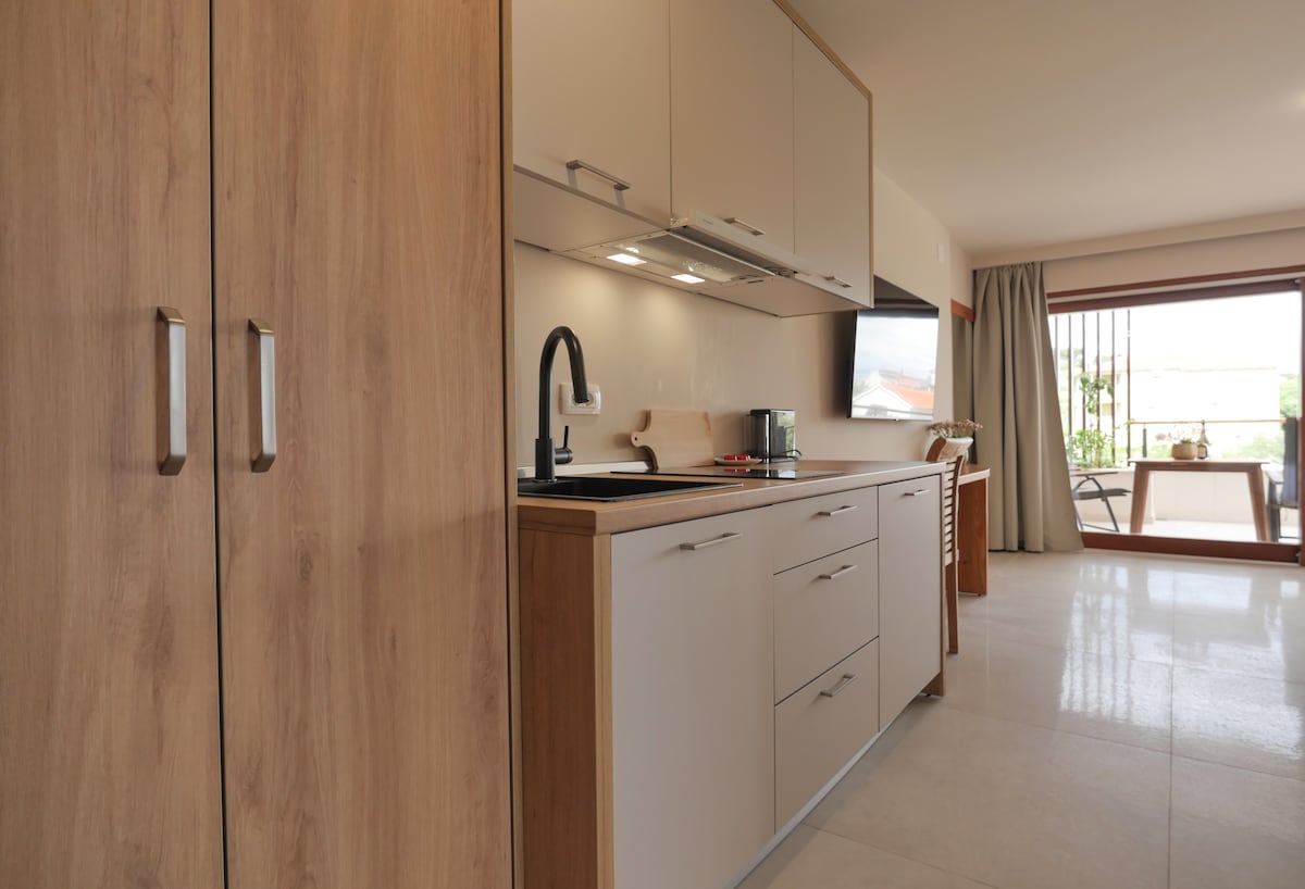 Villa Lojena ofrece estudios nuevos y lujosos para dos personas, con una cocina moderna, un baño espacioso, el último aire acondicionado Daikin y un jacuzzi privado en una gran terraza privada. Los huéspedes podrán acceder a una gran piscina de 85 m², con tumbonas bajo palmeras, chorros de hidromasaje y géiseres, perfectos para una relajación total. Los nuevos scooters eléctricos también están disponibles exclusivamente para los huéspedes de la villa, por solo € 30/día. Perfecto para parejas que busquen privacidad, lujo y una escapada romántica.