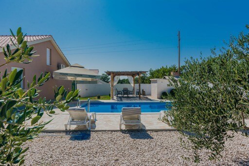 Esta hermosa villa está ubicada en un barrio tranquilo y rodeada de hermosa naturaleza. Estamos cerca de la ciudad de Nin y de la playa más popular de la zona . La ciudad de Zadar está a 15 minutos en automóvil. La casa es el lugar perfecto para familias y grupos más grandes. Es muy espacioso y está equipado de forma moderna. La villa consta de cinco dormitorios, tres baños, sala de estar con comedor, piscina climatizada y cocina al aire libre. Nuestros huéspedes tienen estacionamiento gratuito, WIFI y parrilla.