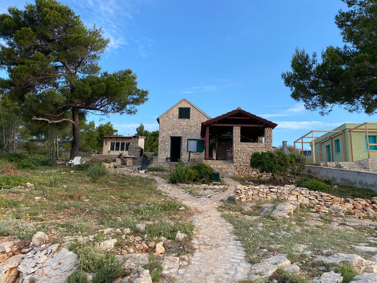 Ubicada en un tranquilo olivar en el lado remoto y tranquilo de la isla, esta encantadora casa de campo de piedra y madera dálmata ofrece verdadera tranquilidad. Totalmente fuera de la red y con energía solar, pero cuidadosamente equipado con Wi-Fi, agua caliente y lavavajillas para una comodidad moderna. A solo 150 metros de una playa cristalina. Desde la casa, disfruta de una increíble vista panorámica del Parque Nacional de Kornati. Perfecto para aquellos que buscan paz, naturaleza y una auténtica vida isleña.
