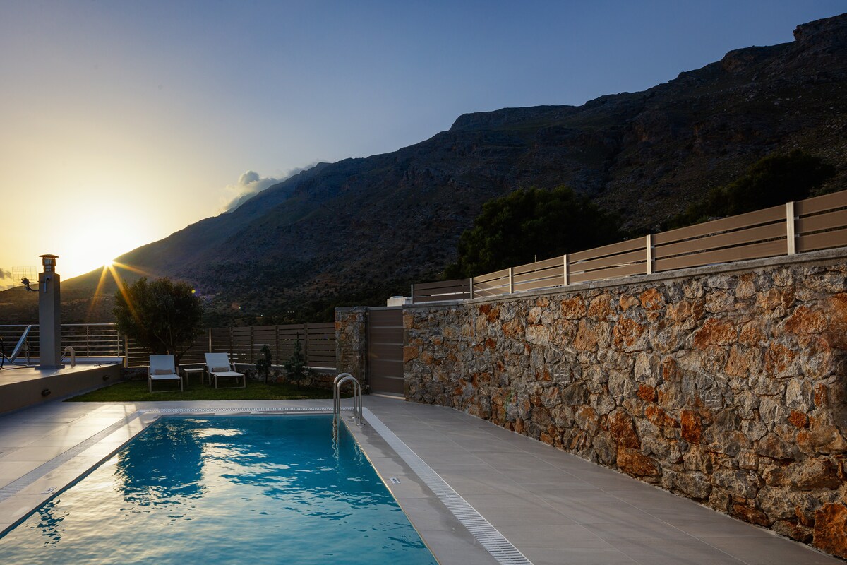 Emphasis Traditional House es un encantador refugio construido en piedra que combina el auténtico carácter cretense con las comodidades modernas. Rodeada de naturaleza y con vistas al mar y a la montaña, la casa cuenta con jacuzzi privado, jardín y bicicletas, por lo que es ideal para parejas o familias que buscan relajación y exploración cerca de Agia Galini.